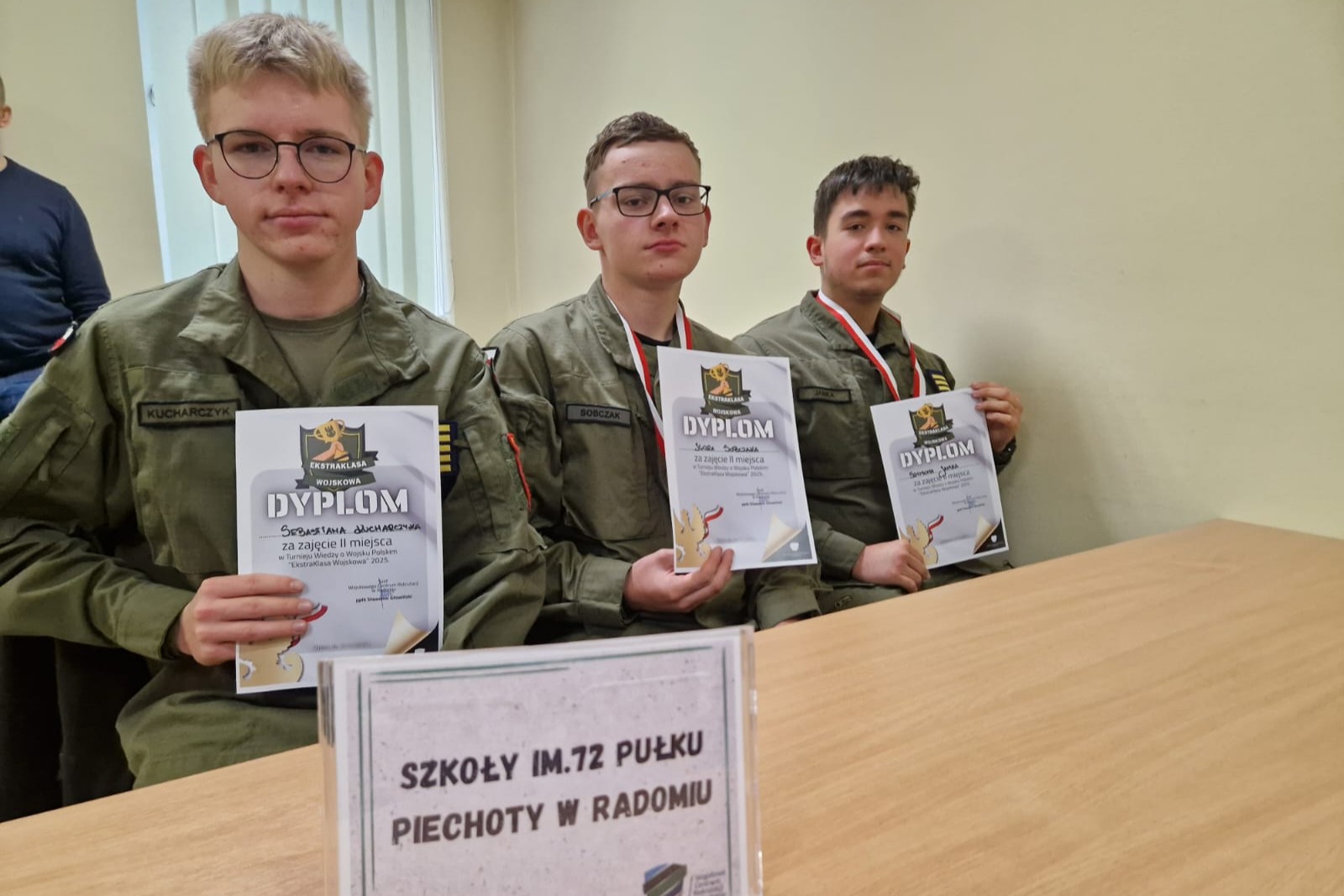 Trzy uczennice Szkół im. 72 Pułku Piechoty w Radomiu ZDZ: Nikola Gizicka z kl. 5 TA, Diana Hrushevska z kl. 4 TC, Daria Kupchenko z kl. 1 LB, laureatki konkursu „Kartka dla Niepodległej” wzięły udział w spotkaniu z okazji urodzin marsz. Józefa Piłsudskiego i Świąt Bożego Narodzenia. Uroczystość miała miejsce 9 grudnia 2025 r. w Centralnej Bibliotece Wojskowej w Warszawie.