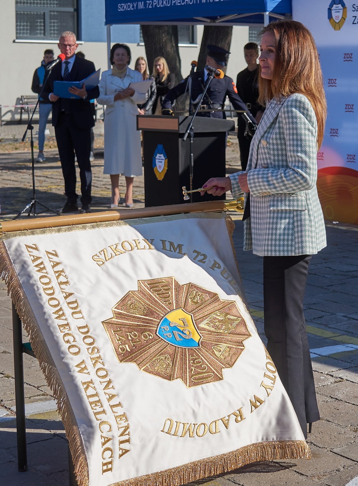 7 października 2022 r. społeczność Szkół im. 72 Pułku Piechoty w Radomiu przeżyła podniosłą uroczystość nadania i poświęcenia Sztandaru. Wydarzenie to, rozpoczęte efektownym pokazem artystycznym w wykonaniu uczniów klas fryzjerskich, było jednocześnie kulminacją tegorocznych obchodów 75-lecia Stowarzyszenia Oświatowego Zakład Doskonalenia Zawodowego oraz 30-lecia edukacji młodzieży i osób dorosłych w Radomiu pod szyldem ZDZ. Uroczystość przebiegała zgodnie z wojskowym ceremoniałem, z udziałem szkolnej kompanii reprezentacyjnej. Przy pięknej słonecznej pogodzie, nadanie sztandaru stało się prawdziwym świętem zarówno dla uczniów, rodziców, grona pedagogicznego, pracowników szkoły, jak i partnerów oraz przyjaciół, którzy zaszczycili swoją obecnością sztandarowy ceremoniał. Złożyło się na niego odczytanie aktu nadania, symboliczne wbicie gwoździ w drzewiec, poświęcenie, wreszcie przekazanie sztandaru młodzieży. Wśród gości nie zabrakło przedstawicieli Ministerstwa Obrony Narodowej, władz miejskich, oświatowych, służb mundurowych, środowiska kombatanckiego, pracodawców tych branż, dla których szkoła kształci przyszłe kadry. Obecni byli m.in. Paweł Dycht – zastępca dyrektora Departamentu Edukacji, Kultury i Dziedzictwa MON, dr Katarzyna Kalinowska – wiceprezydent Radomia, Adrian Barański – dyrektor radomskiej Delegatury Mazowieckiego Kuratorium Oświaty, Jerzy Wątroba – prezes Zarządu Zakładu Doskonalenia Zawodowego w Kielcach, czyli organu prowadzącego Szkoły im. 72 Pułku Piechoty w Radomiu. Na adres szkoły wpłynęły listy gratulacyjne m.in. od parlamentarzystów Andrzeja Kosztowniaka i Marka Suskiego. Uroczystość zakończyła msza święta w kościele garnizonowym, sprawowana pod przewodnictwem ordynariusza diecezji radomskiej, księdza biskupa Marka Solarczyka w intencji społeczności szkolnej. Nie pozostaje nic innego, jak podziękować raz jeszcze wszystkim za wszystko, co przyczyniło się do uświetnienia uroczystości, która na trwale zapisała się w karty historii szkoły. W gronie tym są fundatorzy naszego Sztandaru: Enea Nowa Energia w Radomiu, Firma Radwag Wagi Elektroniczne i Zakłady Automatyki Kombud SA.