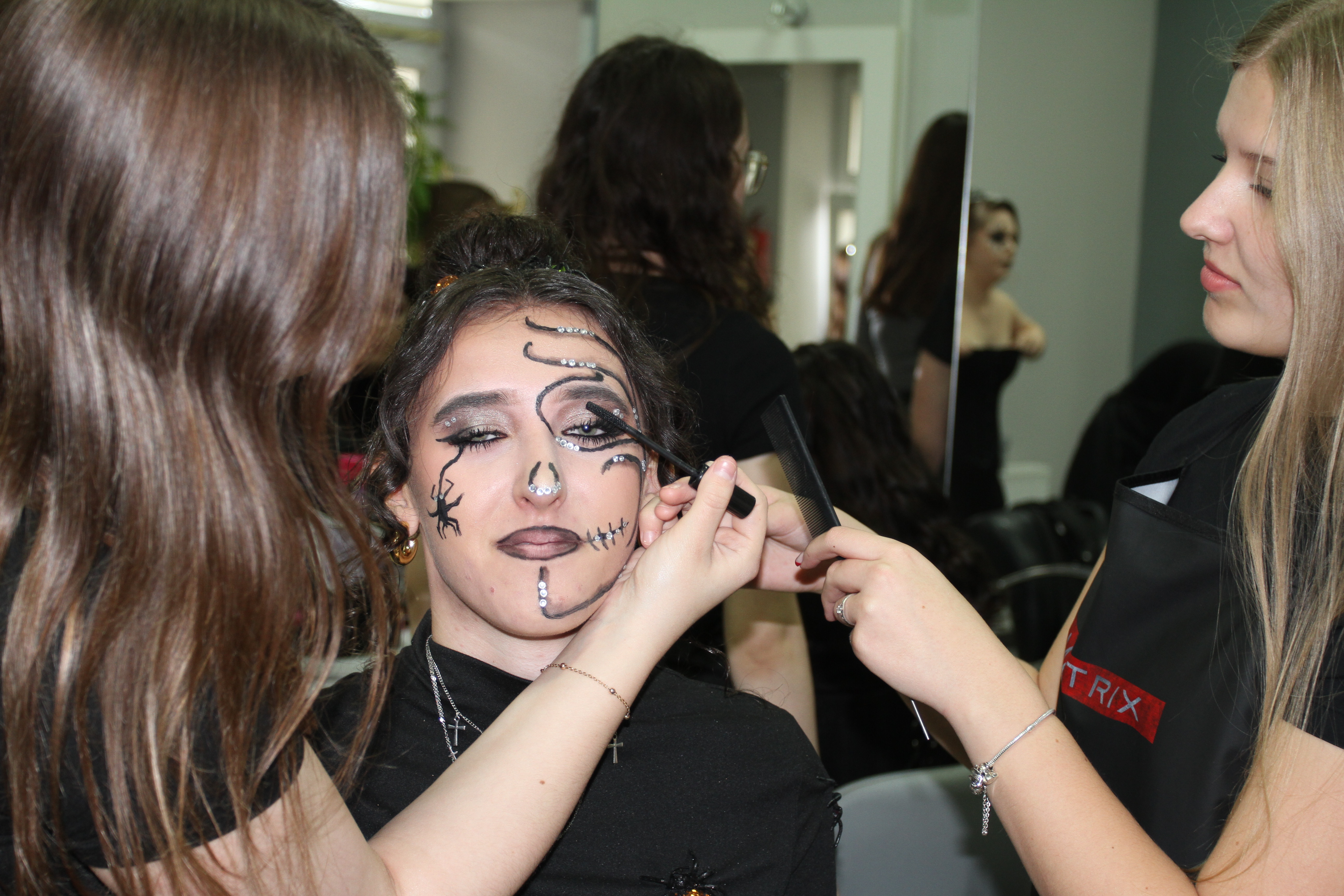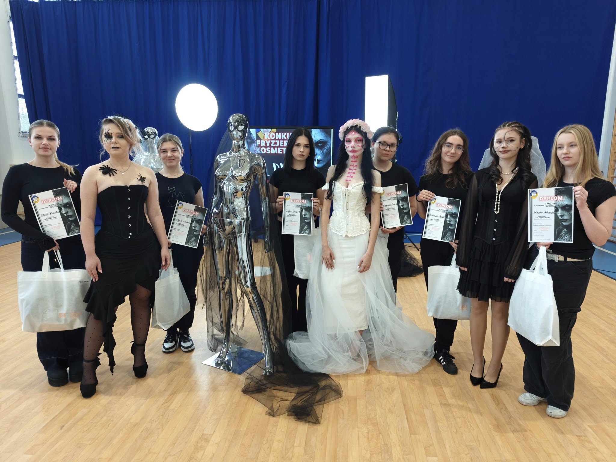 Uczniowie kształcący się w zawodzie technik usług fryzjerskich wzięli udział w wewnątrzszkolnym konkursie fryzjersko - kosmetycznym "Bal duchów", który odbył się 18 listopada 2025r.