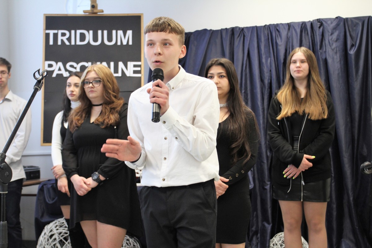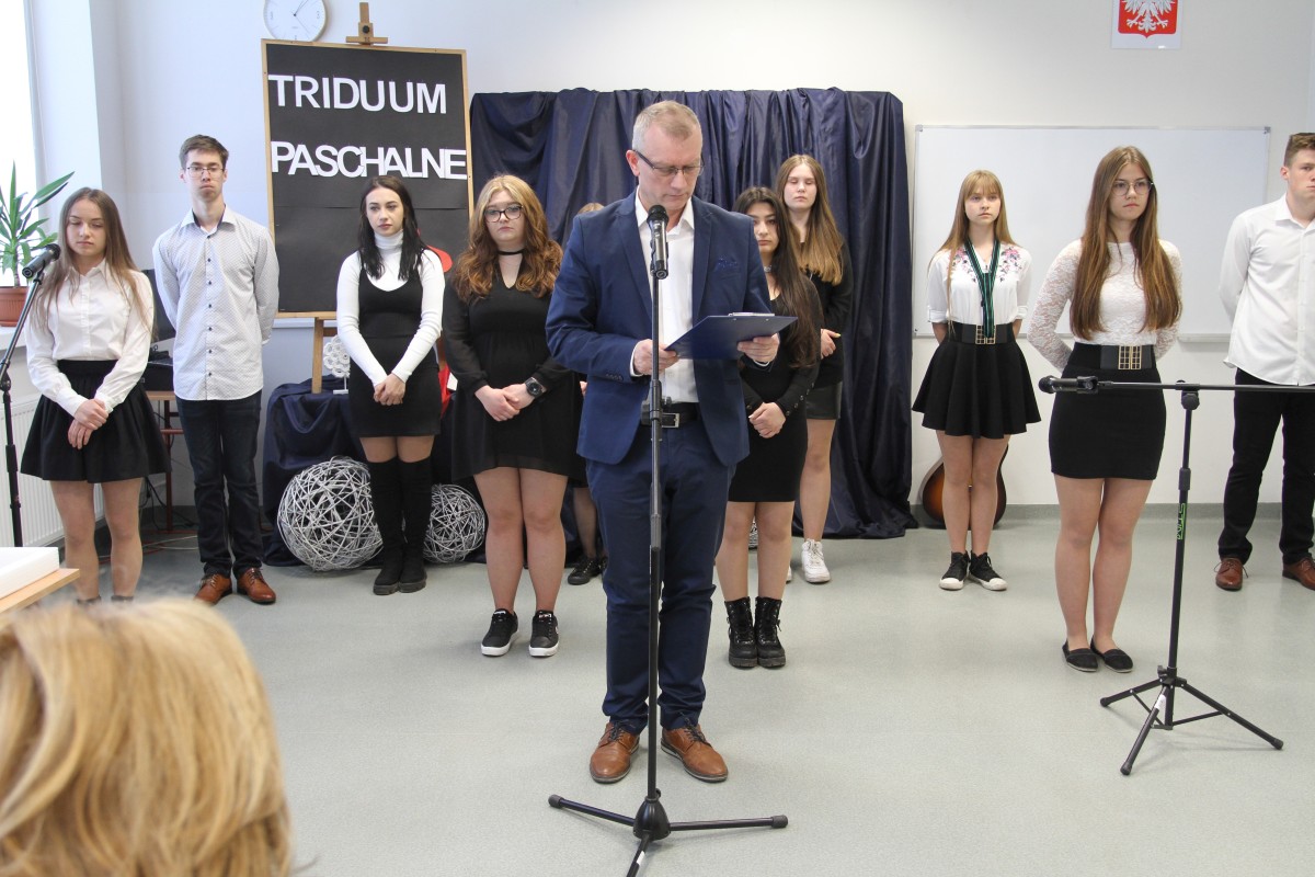 Zbliża się Wielkanoc - najważniejsze święto nie tylko w polskiej tradycji. Wzorem lat ubiegłych społeczność szkolna zebrała się 13 kwietnia 2022 r. na okolicznościowej akademii. Wiele poetyckich i muzycznych, a przede wszystkim ewangelicznych przesłań związanych tematycznie ze Zmartwychwstaniem Pana Jezusa i zwycięstwem życia nad śmiercią, padło z ust uczniów, którzy zaprezentowali widowisko, przygotowane pod kierunkiem nauczycieli: katechetki Katarzyny Pyzary i polonisty Jacka Klimka.