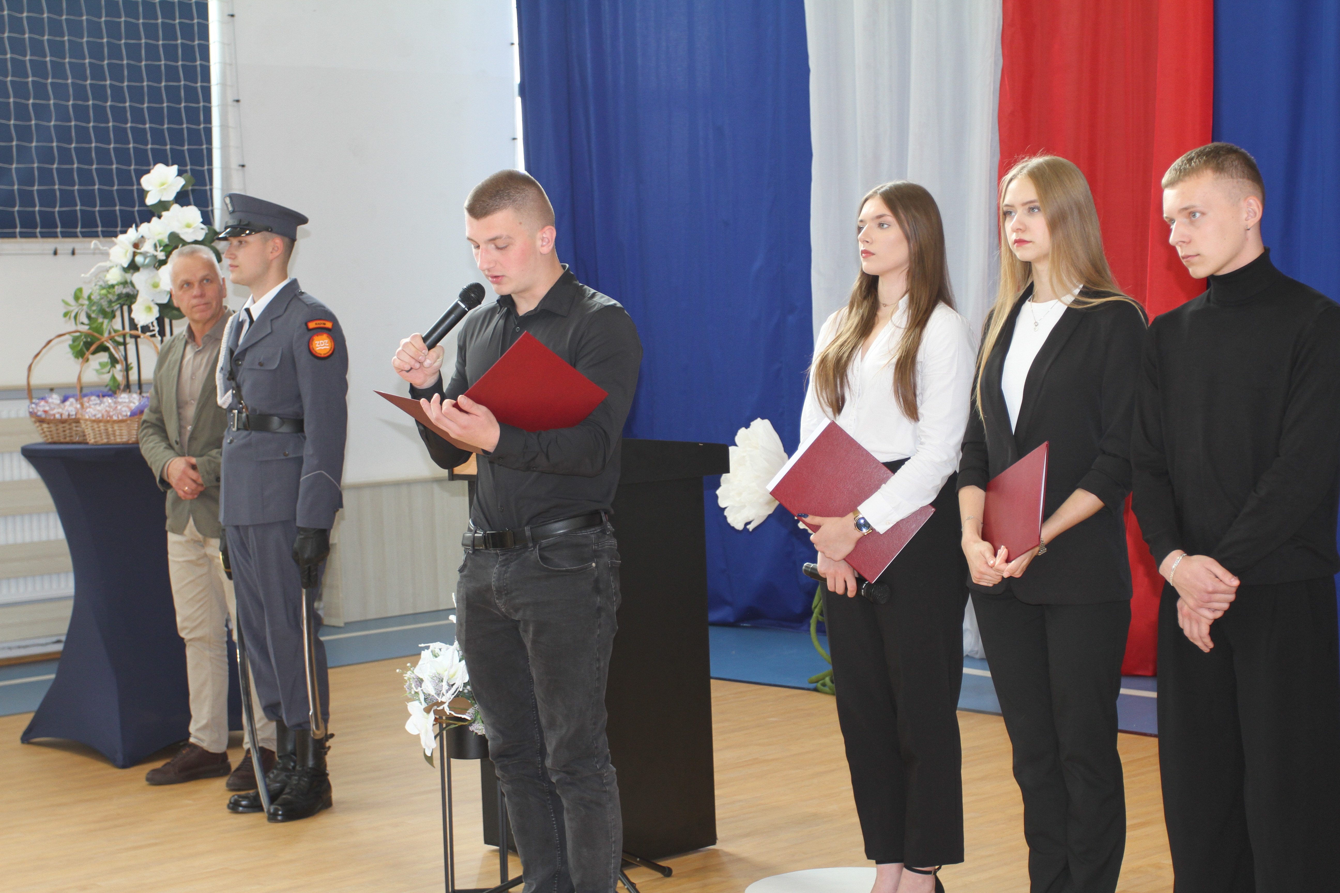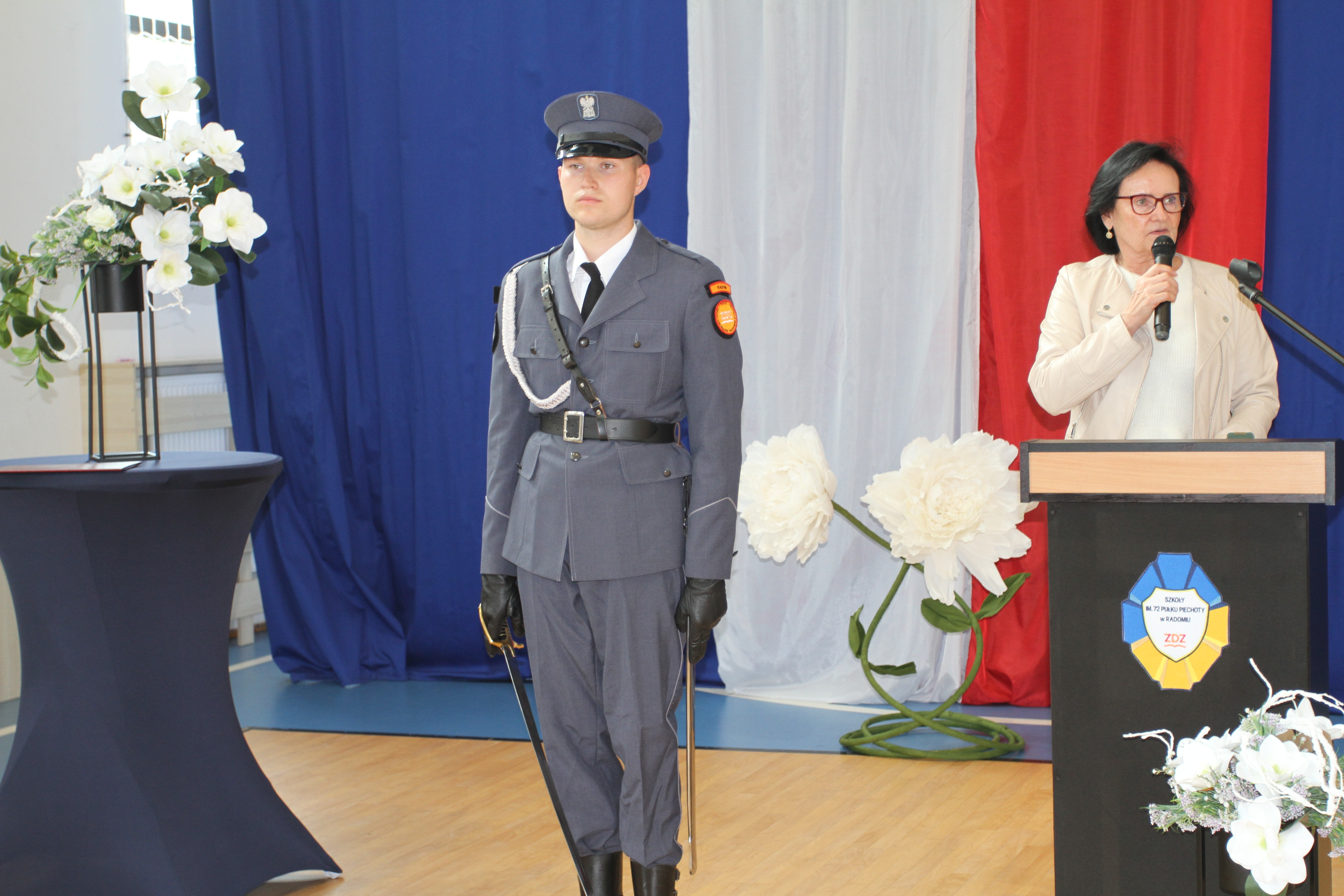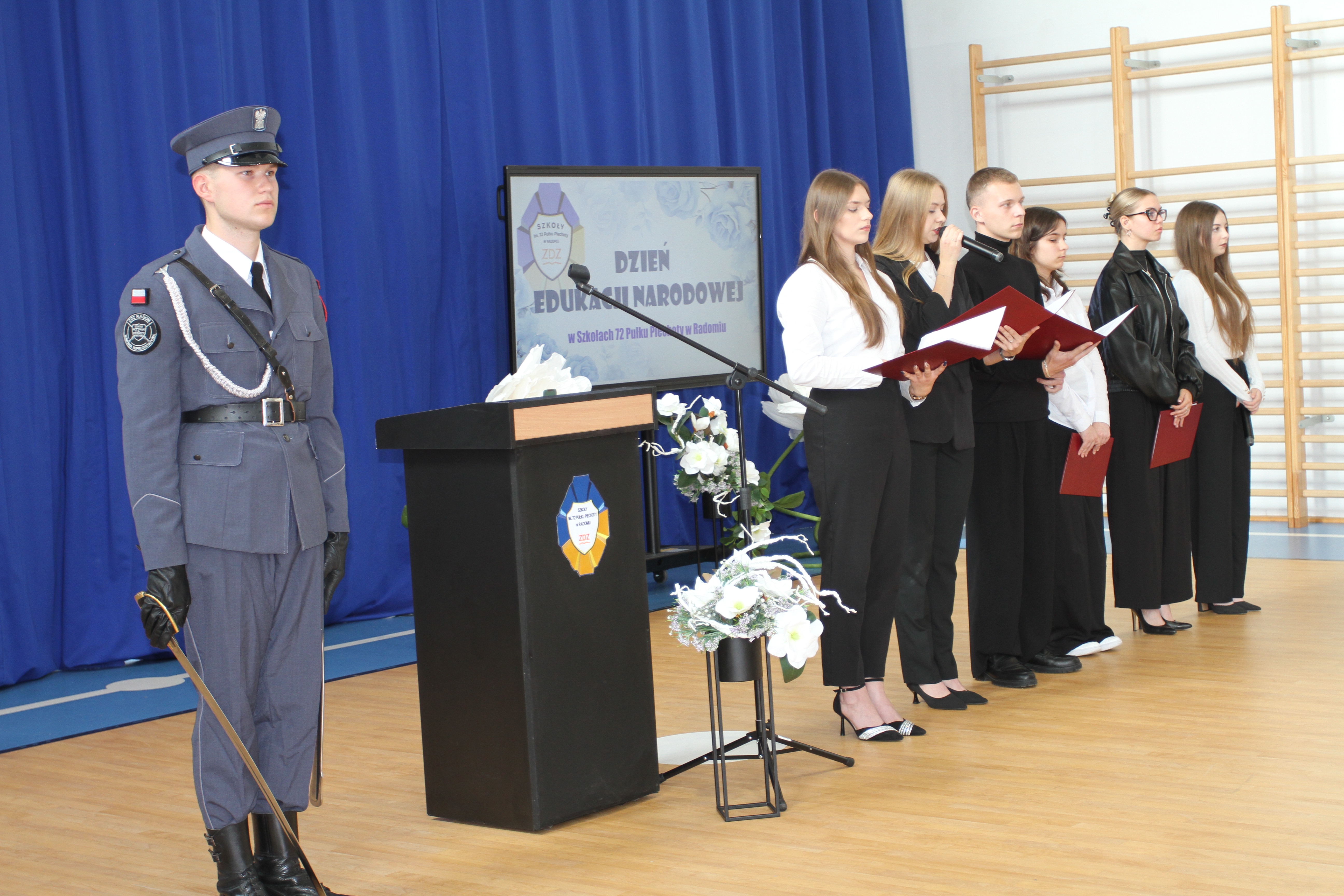 15 października 2025 r. w odświętnej oprawie odbyło się spotkanie naszej społeczności szkolnej. Okazje były dwie: Dzień Edukacji Narodowej i Dzień Pracownika Zakładu Doskonalenia Zawodowego. Obydwa święta są zawsze obchodzone 14 października. W programie nie mogło więc zabraknąć akademii z przypomnieniem najważniejszych kart historii i na tym tle poetycko-muzycznej prezentacji uczniów. Młodzież z uśmiechem i wdzięcznością podziękowała za trud, serce i cierpliwość, a przede wszystkim przekazywaną codziennie wiedzę i troskę o komfort nauki i rozwój szkoły. Życzenia w imieniu uczniów przekazał Patryk Kowalczyk, przewodniczący samorządu szkolnego. Kadrze pedagogicznej, a także pracownikom administracyjnym złożyła życzenia i podziękowania wicedyrektor Alicja Lament. – To taki jedyny dzień w roku – powiedziała, gdy w poczuciu dumy cieszymy się z dużych i małych sukcesów w pracy pedagogicznej. Życzmy sobie, aby było ich jak najwięcej i zawsze bądźmy razem. Na zakończenie odczytany został list gratulacyjny dla całej społeczności szkolnej od Dariusza Wątroby, wiceprezesa Zakładu Doskonalenia Zawodowego w Kielcach.