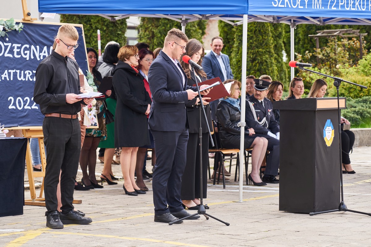 28 kwietnia 2023 r. społeczność szkolna w uroczystej oprawie pożegnała tegorocznych absolwentów. Naukę zakończyli uczniowie klas czwartych Liceum Ogólnokształcącego, czwartych i piątych Technikum oraz drugiej Branżowej Szkoły I stopnia. Podczas apelu na placu szkolnym dyrektor Katarzyna Kołodziejska podziękowała młodzieży za wspólny czas, lata edukacji w szkole i zaangażowanie w działalność społeczną, gratulując prymusom bardzo dobrych wyników. Czekały na nich świadectwa z czerwonym paskiem oraz nagrody rzeczowe. Wielu uczniów oraz ich rodzice odebrali listy gratulacyjne od Dyrekcji. Natomiast absolwenci klas mundurowych otrzymali specjalne certyfikaty zaświadczające o ukończeniu „Edukacji policyjnej”, a także „Edukacji wojskowej”. Grupa abiturientów, którzy uczęszczając do technikum wybrali Oddziały Przygotowania Wojskowego, zakończyła naukę z zaświadczeniem o udziale w prestiżowym programie „Certyfikowane wojskowe klasy mundurowe” Ministerstwa Obrony Narodowej. Gościem uroczystości był ppłk Sławomir Głowiński, komendant Wojskowego Centrum Rekrutacji w Radomiu. Na koniec młodzież udała się po raz ostatni do sal lekcyjnych na spotkanie ze swoimi wychowawcami, by odebrać świadectwo ukończenia szkoły. Tuż po długim majowym weekendzie, 4 maja, rozpoczną się egzaminy maturalne. Wszystkim życzymy wymarzonych tematów i połamania piór!