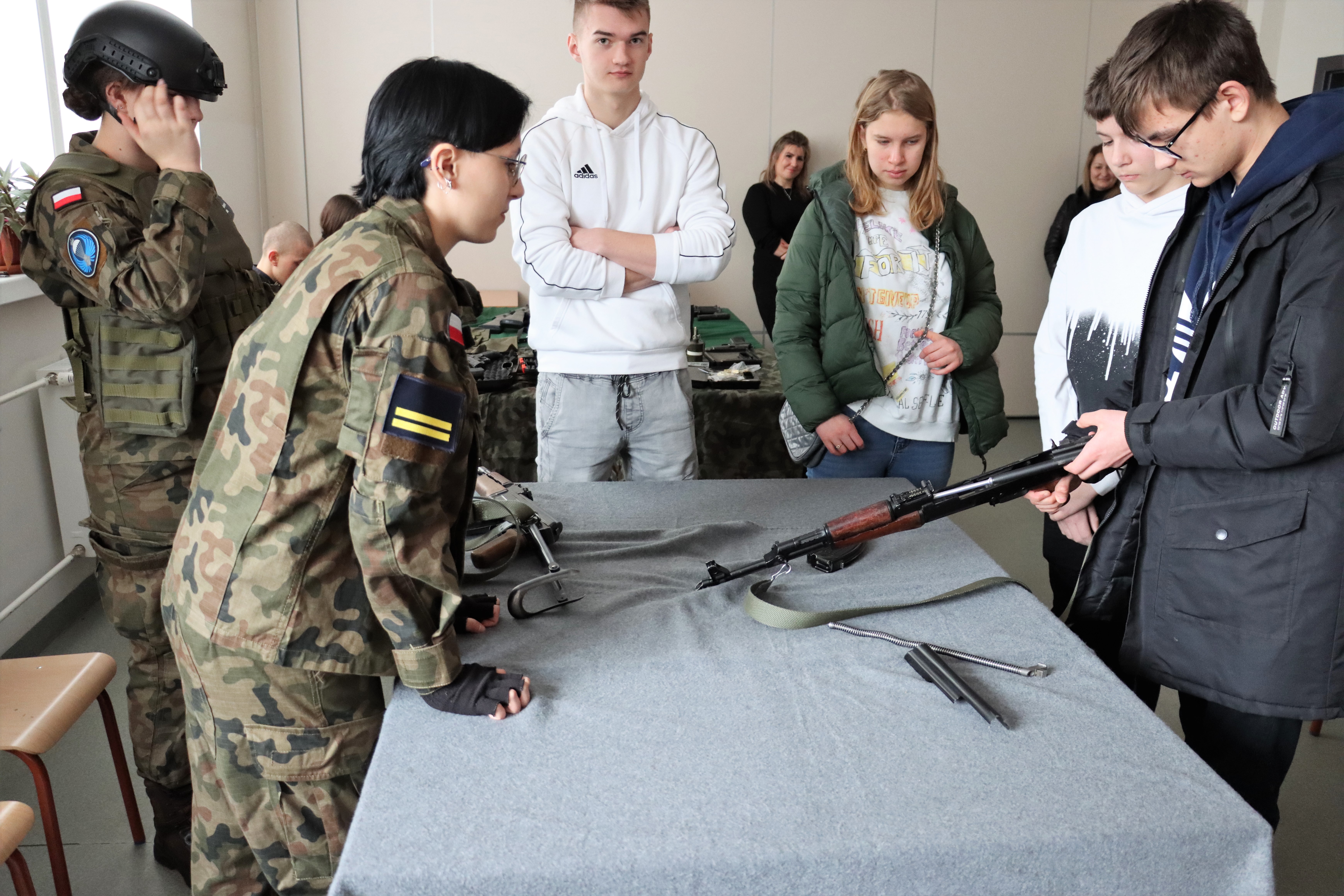 Tegoroczna przerwa w nauce trwająca od 13 do 26 lutego 2023 r. przebiega w Szkołach im. 72 Pułku Piechoty pod znakiem rozmaitych atrakcji i kreatywnych zajęć. Przez tydzień grupa 30 uczniów pod opieką nauczycieli wypoczywała w Bukowinie Tatrzańskiej, do woli korzystając z uroków zimy. Z kolei przez trzy dni ferii szkoła otworzyła swoje podwoje dla radomskich uczniów, którzy ten czas spędzają w domach. Wszyscy zainteresowani mog;i przyjść na ul. Saską 4/6 i spróbować swoich sił w symulatorze jazdy kabiny maszynisty, poznać zasady bezpiecznego korzystania z broni, ale też pomyśleć o swojej przyszłości zawodowej, zwiedzając pracownie m.in. wizażu, fryzjerstwa, informatyczną, logistyczną, chemiczną i gastronomiczną. Specjalny pokaz dla swoich młodszych kolegów przygotowała szkolna kompania reprezentacyjna. Można też było poznać najważniejsze karty historii 72 Pułku Piechoty – patrona szkoły, tak blisko związanego z dziejami naszego miasta. Chętnych do zaproponowanej przez nas formy spędzenia czasu nie brakowało. Tym bardziej, że w rolę przewodników po szkole, oprócz nauczycieli, chętnie angażują się sami uczniowie – gospodarze ferii.