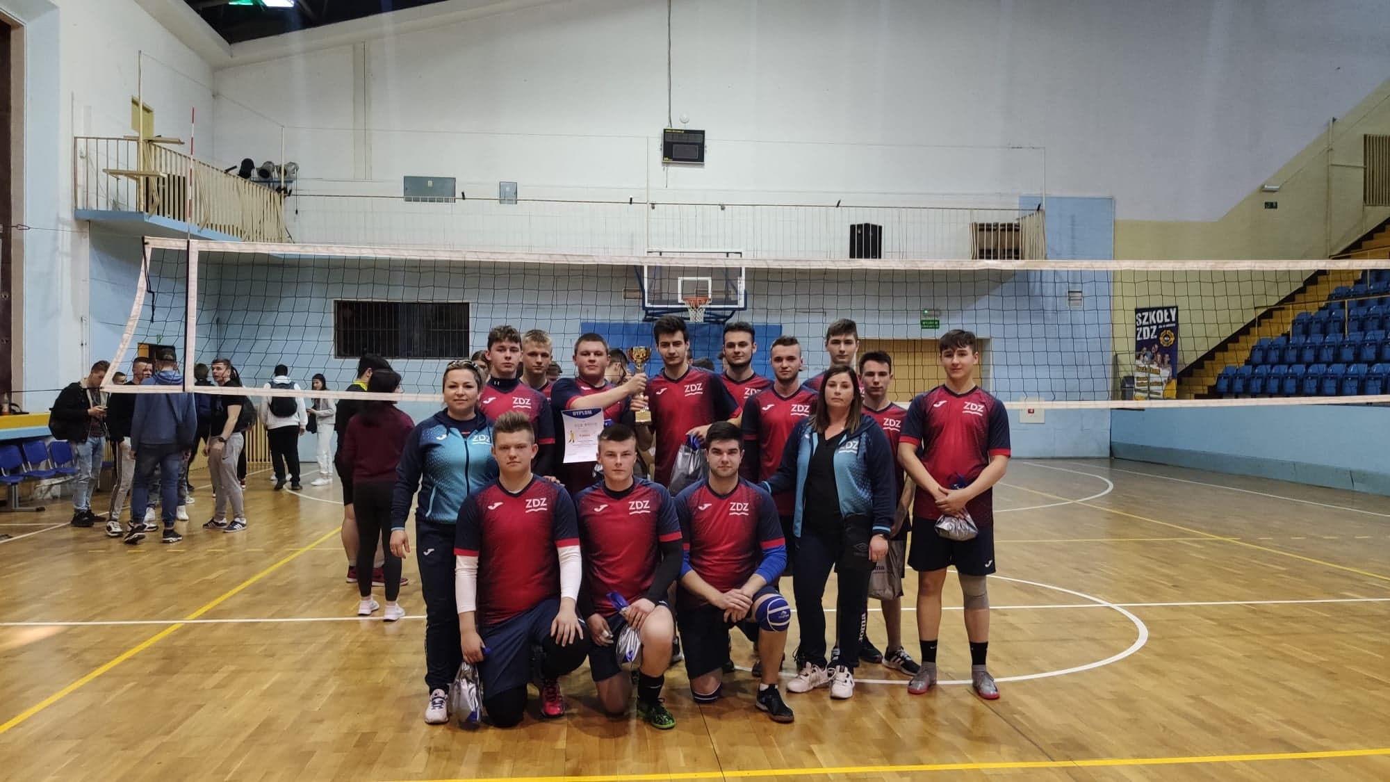 24.03.2022r. Uczniowie naszej szkoły wzięli udział w turnieju piłki siatkowej chłopców o puchar prezesa z okazji 75-lecia Zespołu Szkół Zakładu Doskonalenia Zawodowego w Kielcach. Do turnieju zgłosiło się 6 szkół Zakładu Doskonalenia Zawodowego. Po rozegraniu 3 meczy nasza drużyna uplasowała się na 1 miejscu w grupie. W półfinałach zagrali z drużyną ZDZ Końskie, z którymi wygrali i awansowali do finału, gdzie spotkali się z ZDZ Kielce. Po zaciętej walce przywozimy do szkoły srebrny medal. Gratulację dla wszystkich zawodników!!