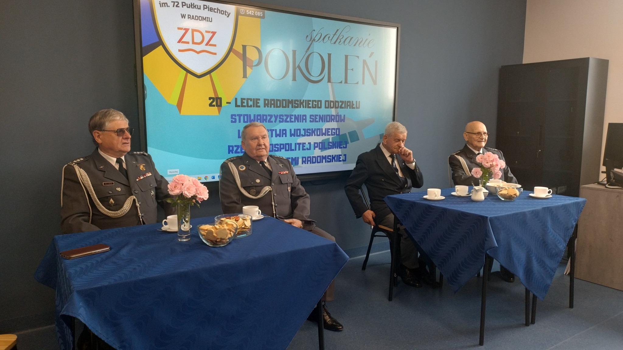 13 czerwca 2025 r. w Szkołach im.72 Pułku Piechoty z inicjatywy dyrektor szkoły Katarzyny Kołodziejskiej odbyło się „Spotkanie Pokoleń”, na którym obecni byli zacni goście Stowarzyszenia Seniorów Lotnictwa Wojskowego Rzeczypospolitej Polskiej im. Lotników Ziemi Radomskiej płk dypl. Andrzej Stobiecki, mjr Stanisław Kuśmierski, płk pilot Krystian Motyliński i płk Ryszard Trybuł. Uczniowie Technikum kształcący się w zawodzie technik lotniskowych służb operacyjnych zaprezentowali się w umundurowaniu żołnierzy 72 Pułku Piechoty – Patrona szkoły, umundurowaniu wojskowym i umundurowaniu służb lotniskowych. Okazją do spotkania był obchodzony jubileusz 20- lecia stowarzyszenia. Na tę okoliczność dyrektor szkoły Katarzyna Kołodziejska skierowała list gratulacyjny do Pana płk dyp.w st.spocz. Andrzeja Stobieckiego prezesa Zarządu Oddziału Radomskiego Stowarzyszenia. W tym szczególnym dniu chcieliśmy uhonorować i oddać szacunek pokoleniu lotników, wskazując młodzieży wzorce godne naśladowania. W ciekawej dyskusji młodzież miała możliwość dowiedzieć się o bogatej historii lotnictwa oraz pracy związanej z obsługą sprzętu lotniczego. Za bardzo ciekawe spotkanie, które udokumentowały wspólne zdjęcia, podziękowała wicedyrektor Elżbieta Wójtowicz. Na zakończenie Goście zwiedzili nowoczesne pracownie do realizacji zajęć edukacyjnych, w których kształci się młodzież w zawodzie technik lotniskowych służb operacyjnych.