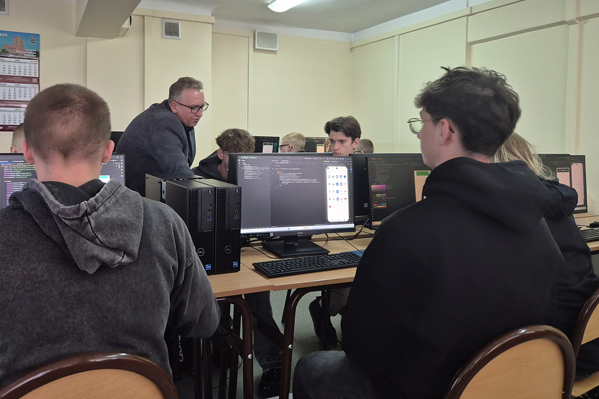 Uczniowie mieli okazję poznać kierunki studiów, warunki studiowania oraz infrastrukturę uczelni. Następnie uczestniczyli w praktycznych zajęciach z budowy aplikacji mobilnych oraz w laboratorium rozpoznawania obrazów z pomocą technologii AI.