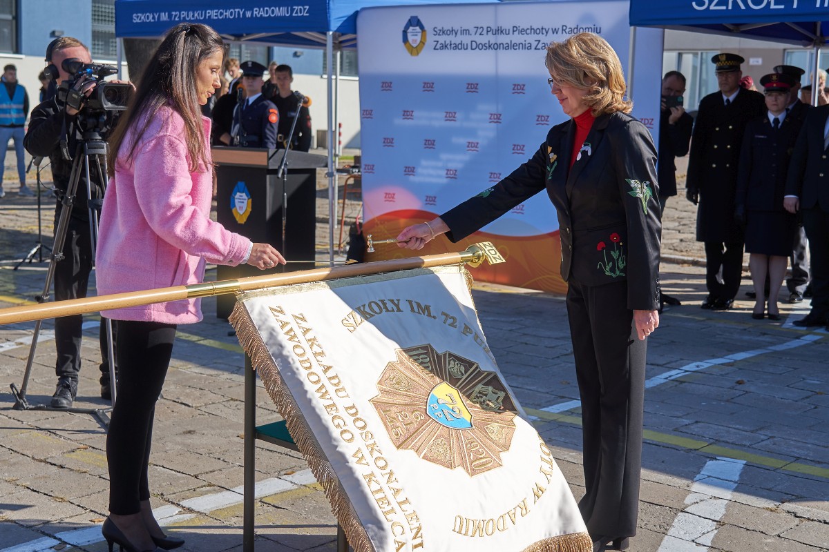 7 października 2022 r. społeczność Szkół im. 72 Pułku Piechoty w Radomiu przeżyła podniosłą uroczystość nadania i poświęcenia Sztandaru. Wydarzenie to, rozpoczęte efektownym pokazem artystycznym w wykonaniu uczniów klas fryzjerskich, było jednocześnie kulminacją tegorocznych obchodów 75-lecia Stowarzyszenia Oświatowego Zakład Doskonalenia Zawodowego oraz 30-lecia edukacji młodzieży i osób dorosłych w Radomiu pod szyldem ZDZ. Uroczystość przebiegała zgodnie z wojskowym ceremoniałem, z udziałem szkolnej kompanii reprezentacyjnej. Przy pięknej słonecznej pogodzie, nadanie sztandaru stało się prawdziwym świętem zarówno dla uczniów, rodziców, grona pedagogicznego, pracowników szkoły, jak i partnerów oraz przyjaciół, którzy zaszczycili swoją obecnością sztandarowy ceremoniał. Złożyło się na niego odczytanie aktu nadania, symboliczne wbicie gwoździ w drzewiec, poświęcenie, wreszcie przekazanie sztandaru młodzieży. Wśród gości nie zabrakło przedstawicieli Ministerstwa Obrony Narodowej, władz miejskich, oświatowych, służb mundurowych, środowiska kombatanckiego, pracodawców tych branż, dla których szkoła kształci przyszłe kadry. Obecni byli m.in. Paweł Dycht – zastępca dyrektora Departamentu Edukacji, Kultury i Dziedzictwa MON, dr Katarzyna Kalinowska – wiceprezydent Radomia, Adrian Barański – dyrektor radomskiej Delegatury Mazowieckiego Kuratorium Oświaty, Jerzy Wątroba – prezes Zarządu Zakładu Doskonalenia Zawodowego w Kielcach, czyli organu prowadzącego Szkoły im. 72 Pułku Piechoty w Radomiu. Na adres szkoły wpłynęły listy gratulacyjne m.in. od parlamentarzystów Andrzeja Kosztowniaka i Marka Suskiego. Uroczystość zakończyła msza święta w kościele garnizonowym, sprawowana pod przewodnictwem ordynariusza diecezji radomskiej, księdza biskupa Marka Solarczyka w intencji społeczności szkolnej. Nie pozostaje nic innego, jak podziękować raz jeszcze wszystkim za wszystko, co przyczyniło się do uświetnienia uroczystości, która na trwale zapisała się w karty historii szkoły. W gronie tym są fundatorzy naszego Sztandaru: Enea Nowa Energia w Radomiu, Firma Radwag Wagi Elektroniczne i Zakłady Automatyki Kombud SA.