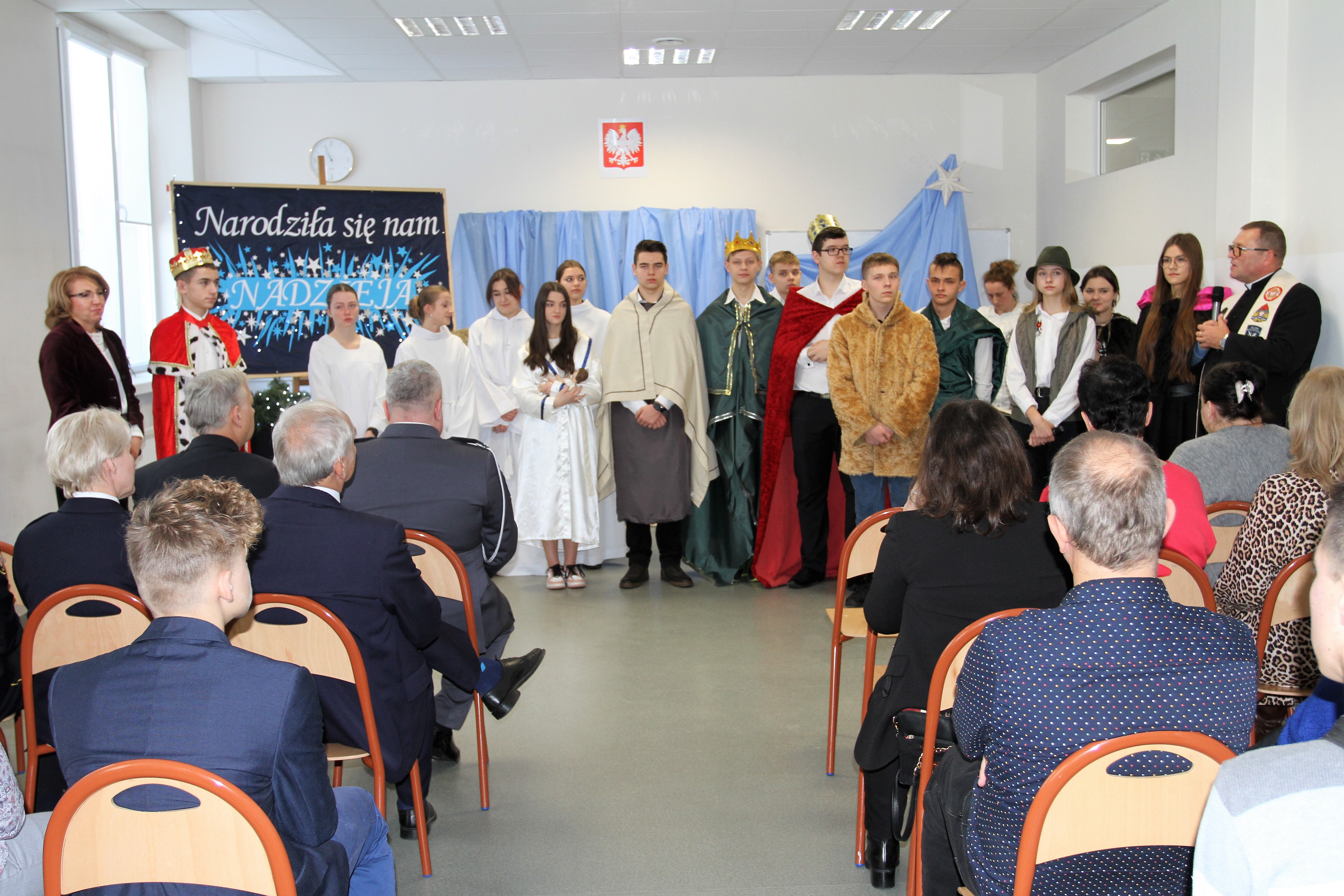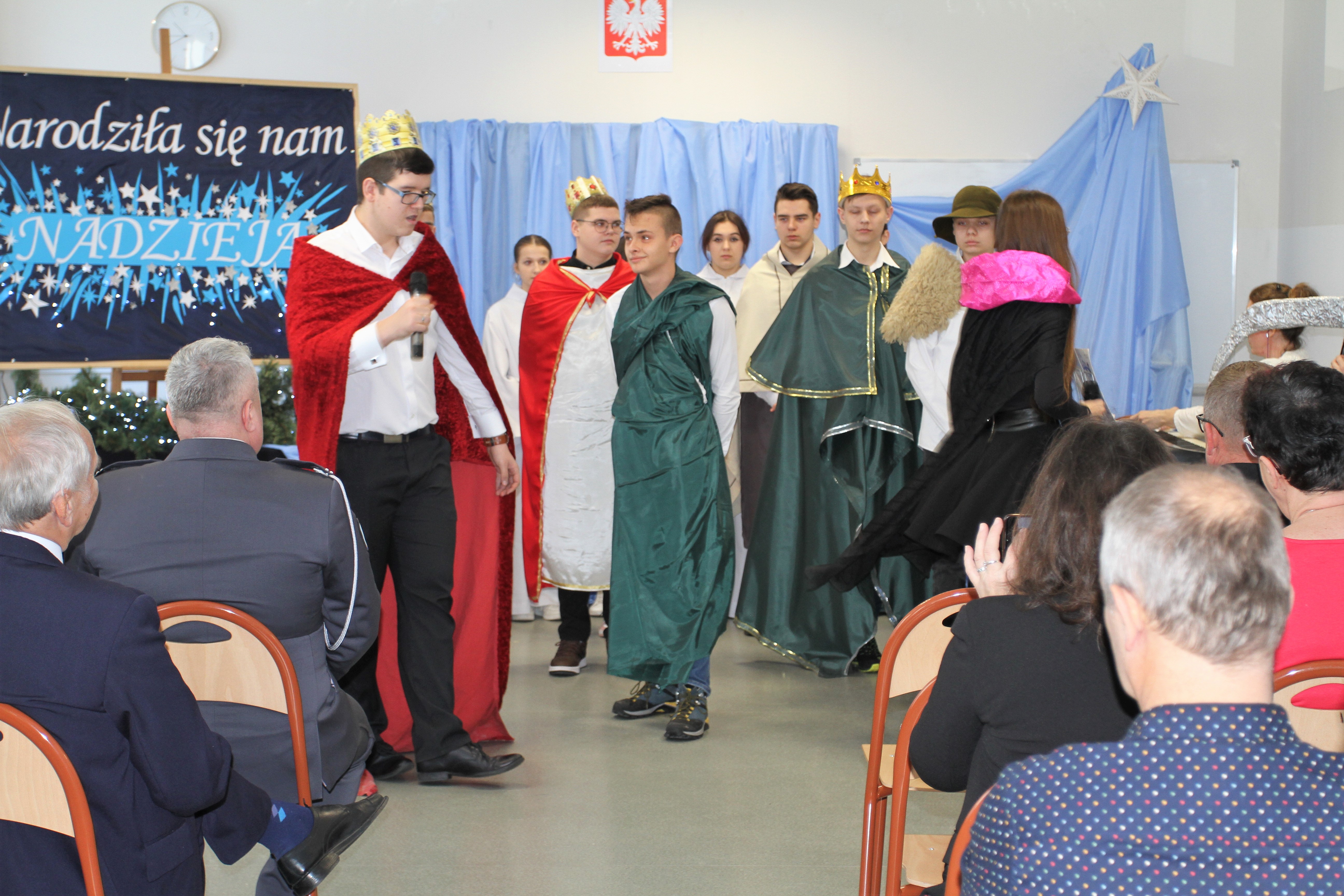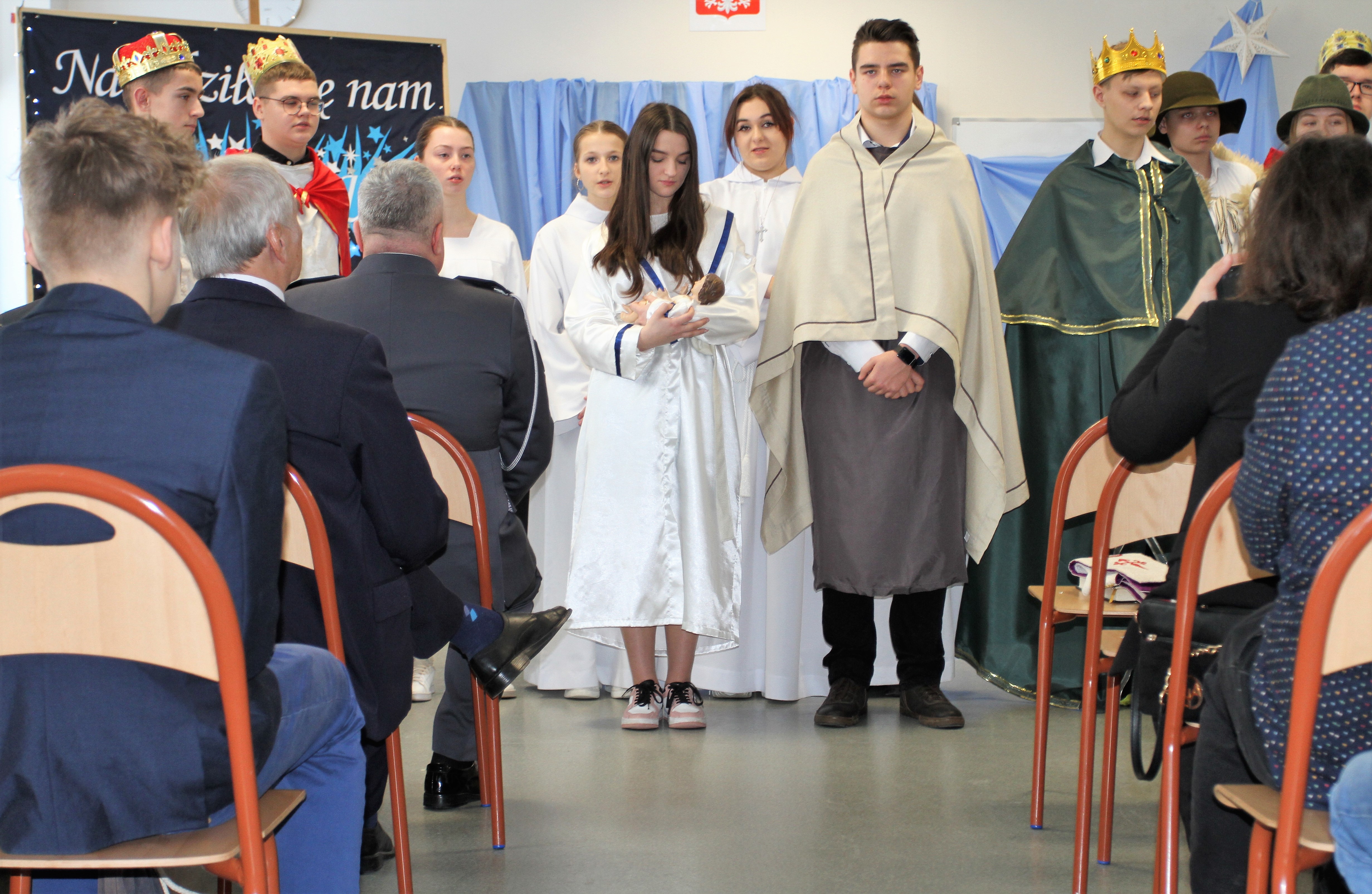 „Narodziła się nam Nadzieja” – pod takim tytułem uczniowie pod kierunkiem pani katechetki, Katarzyny Pyzary, przygotowali jasełka, na które zaprosili całą społeczność szkół i działalności kursowej w dniu 19 grudnia 2022 r. W takiej scenerii do dyrekcji, grona pedagogicznego i pracowników, a także młodzieży szkolnej zwrócili się z życzeniami świąteczno-noworocznymi Goście uroczystości: poseł Marek Suski oraz ks. Gabriel Marciniak – duszpasterz służb mundurowych. Zaproszenie do udziału w jasełkach przyjęli również przedstawiciele służb mundurowych, pracodawcy z branży lotniskowej i kolejowej. W programie uroczystości nie mogło zabraknąć podzielenia się opłatkiem, a następnie poczęstunku tradycyjnymi potrawami wigilijnymi. Dziękując Gościom za obecność, a młodzieży i nauczycielom za inicjatywę i zorganizowanie wspaniałego przedświątecznego spotkania dyrektor Katarzyna Kołodziejska życzyła wszystkim na ten wyjątkowy czas zdrowia, spokoju i mnóstwo rodzinnego ciepła oraz wszelkiej pomyślności i spełnienia zamierzeń w Nowym Roku.