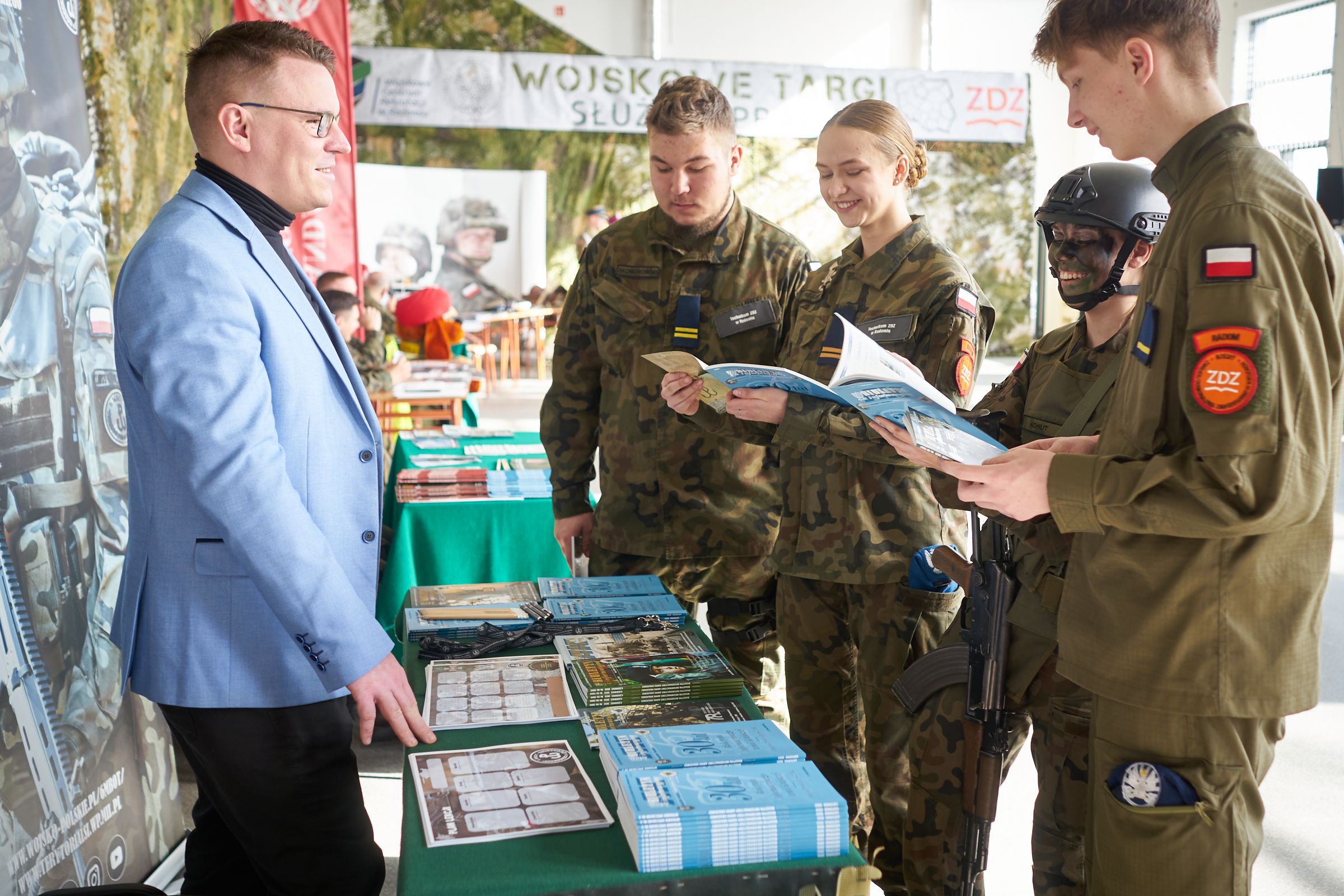 Jako pierwsza szkoła w Radomiu i subregionie radomskim, która wprowadziła do swojej oferty edukacyjnej kształcenie w klasach mundurowych, zostaliśmy wyróżnieni zaszczytną rolą gospodarza i partnera organizacyjnego I Wojskowych Targów Służby i Pracy. Targi otworzyli uroczyście Wojciech Skurkiewicz, sekretarz stanu w Ministerstwie Obrony Narodowej oraz płk dr Zdzisław Małkowski - szef Mazowieckiego Ośrodka Centralnego Wojskowego Centrum Rekrutacji jako główni organizatorzy. Wśród honorowych gości była Mazowiecka Kurator Oświaty Aurelia Michałowska. Następnie przez dwa dni młodzież szkolna, a także dorośli mieszkańcy Radomia i woj. mazowieckiego zwiedzali stoiska wystawców, rozmawiali z żołnierzami wszystkich rodzajów sił zbrojnych, rekruterami do służby wojskowej, studentami uczelni kształcących kadry dla polskiej armii. Swoje stoisko miały Szkoły im. 72 Pułku Piechoty, prezentując dorobek i możliwości kształcenia w klasach Oddziału Przygotowania Wojskowego we współpracy z Ministerstwem Obrony Narodowej. Nie lada atrakcją były pokazy nowoczesnego sprzętu wojskowego. Do Radomia został przetransportowany pojazd opancerzony Rosomak, można było podziwiać czołg Leopard, pojazd specjalny straży pożarnej, wozy dowodzenia, symulator dachowania samochodów i inne. Na chętnych czekała wirtualna strzelnica i żołnierska grochówka prosto z kotła. W programie nie zabrakło koncertu Orkiestry Wojskowej z Radomia, wystąpił też zespół artystyczny z Grójca, odbyły się pokazy musztry. Targi okazały się bardzo ciekawą inicjatywą, życzliwie przyjętą przez lokalną społeczność. Przy pięknej słonecznej pogodzie, stoiska i plenerowe pokazy odwiedziły tłumy fanów polskiego wojska nie tylko z Radomia.