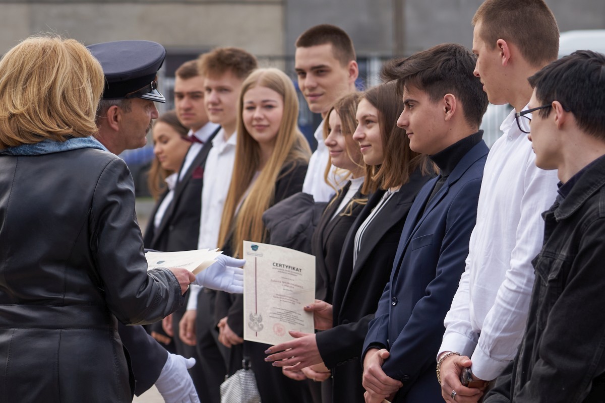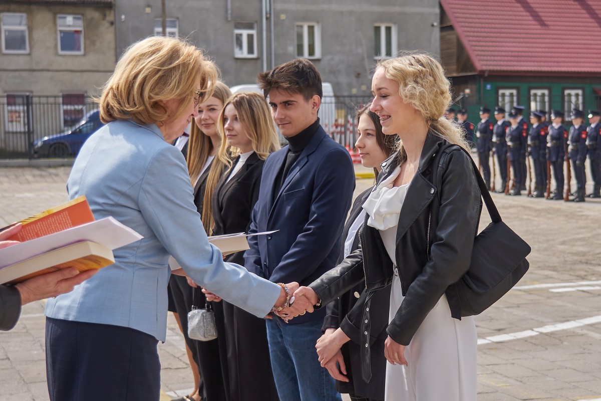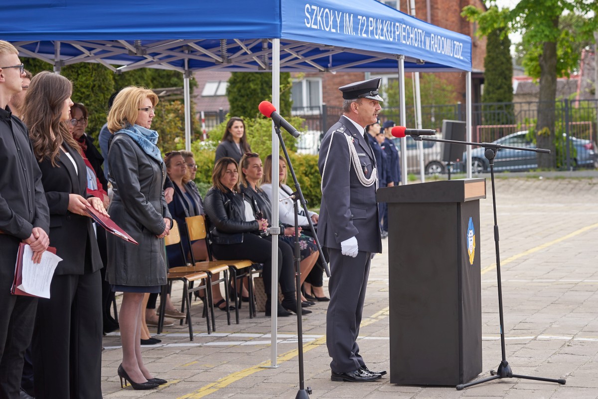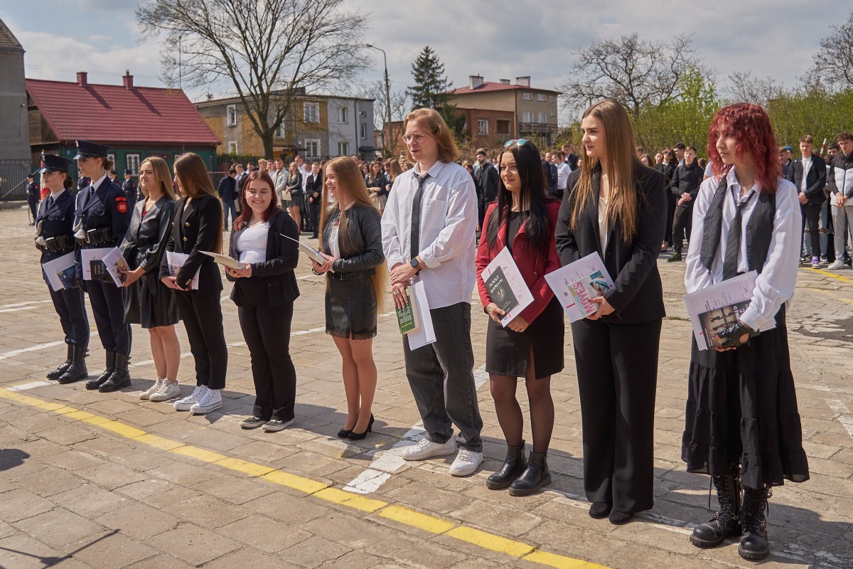 28 kwietnia 2023 r. społeczność szkolna w uroczystej oprawie pożegnała tegorocznych absolwentów. Naukę zakończyli uczniowie klas czwartych Liceum Ogólnokształcącego, czwartych i piątych Technikum oraz drugiej Branżowej Szkoły I stopnia. Podczas apelu na placu szkolnym dyrektor Katarzyna Kołodziejska podziękowała młodzieży za wspólny czas, lata edukacji w szkole i zaangażowanie w działalność społeczną, gratulując prymusom bardzo dobrych wyników. Czekały na nich świadectwa z czerwonym paskiem oraz nagrody rzeczowe. Wielu uczniów oraz ich rodzice odebrali listy gratulacyjne od Dyrekcji. Natomiast absolwenci klas mundurowych otrzymali specjalne certyfikaty zaświadczające o ukończeniu „Edukacji policyjnej”, a także „Edukacji wojskowej”. Grupa abiturientów, którzy uczęszczając do technikum wybrali Oddziały Przygotowania Wojskowego, zakończyła naukę z zaświadczeniem o udziale w prestiżowym programie „Certyfikowane wojskowe klasy mundurowe” Ministerstwa Obrony Narodowej. Gościem uroczystości był ppłk Sławomir Głowiński, komendant Wojskowego Centrum Rekrutacji w Radomiu. Na koniec młodzież udała się po raz ostatni do sal lekcyjnych na spotkanie ze swoimi wychowawcami, by odebrać świadectwo ukończenia szkoły. Tuż po długim majowym weekendzie, 4 maja, rozpoczną się egzaminy maturalne. Wszystkim życzymy wymarzonych tematów i połamania piór!