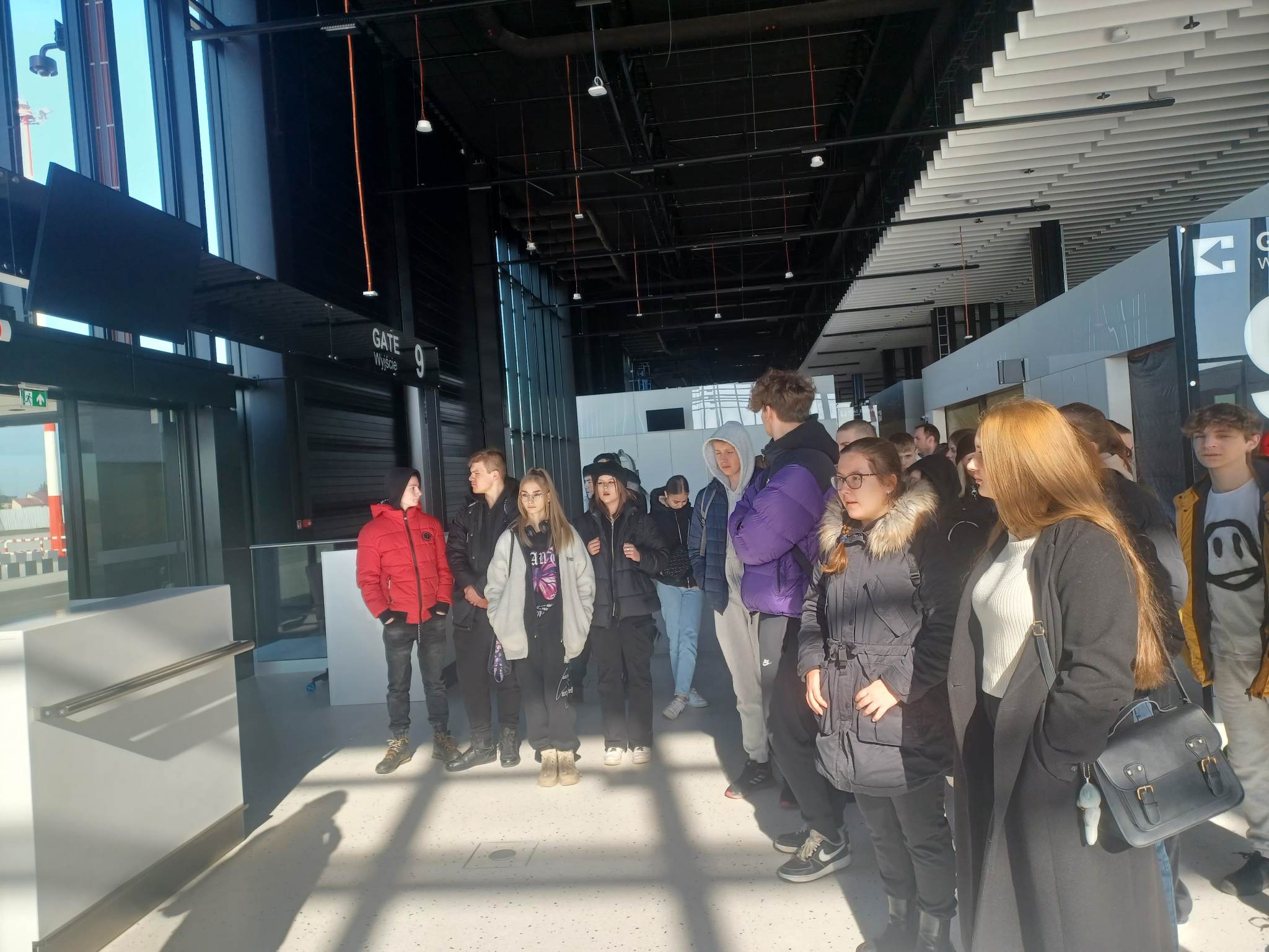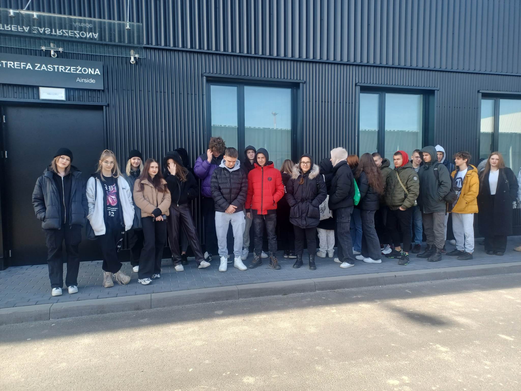 Uczniowie z klas 1td i 2td, którzy kształcą się na kierunku technik lotniskowych służb operacyjnych, uczestniczyli w kolejnym wyjeździe szkoleniowym przybliżającym pracę w wyuczonym zawodzie. 24 maja 2023 r. odbyli wycieczkę do portu lotniczego im. Fryderyka Chopina na warszawskim Okęciu. Młodzież zapoznała się ze strukturą organizacyjno-kadrową oraz infrastrukturą tego największego w Polsce lotniska, zwiedzając drogę startową, z której odlatują i przylatują samoloty różnych przewoźników. Uczniowie dowiedzieli się również, jakie obowiązki wykonują pracownicy po przylocie i przed odlotem statków powietrznych. Mieli możliwość zobaczyć sprzęt nowoczesnej generacji, która pomaga utrzymać płytę lotniska w należytej czystości. Nie lada atrakcją był pokaz strażacki.