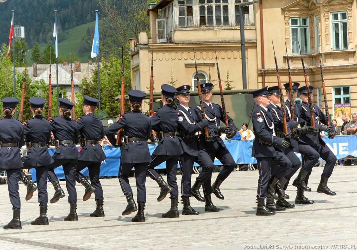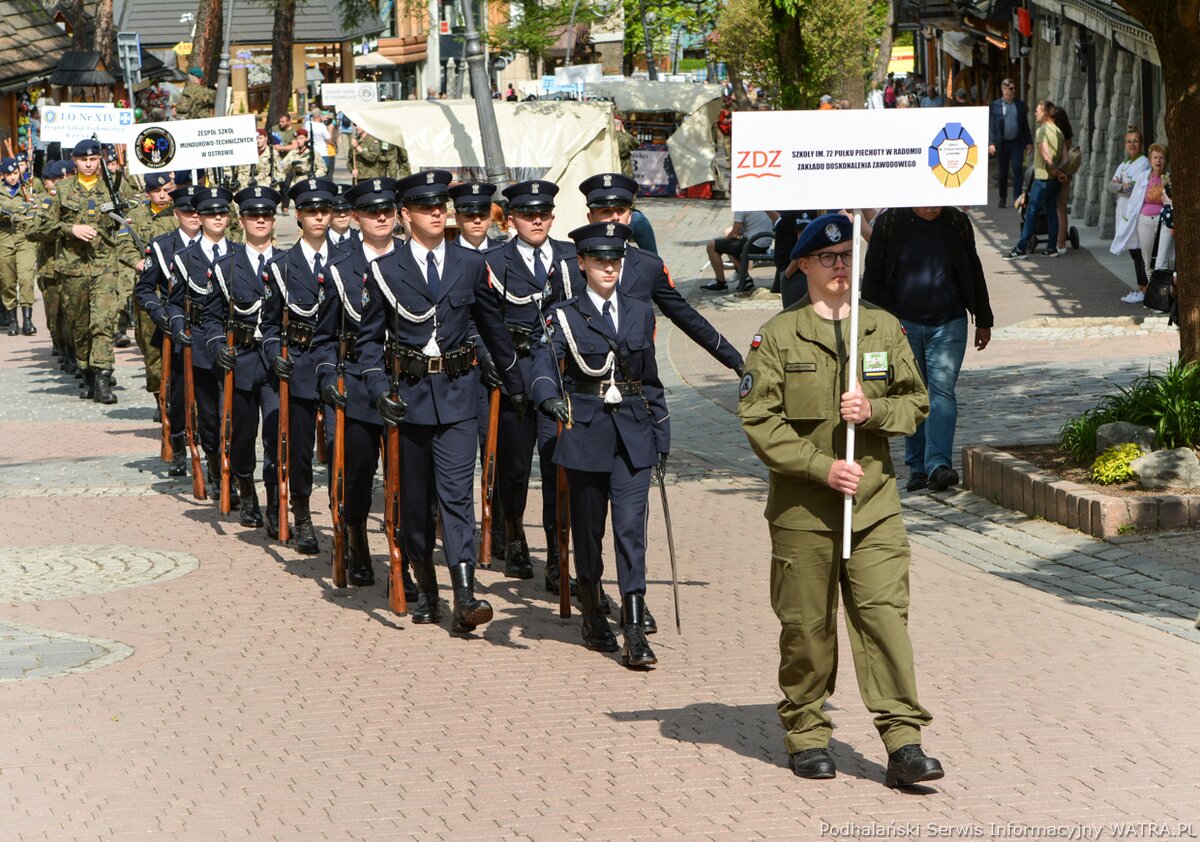 W dniach 29-30 maja 2023 r. w stolicy polskich Tatr odbyła się ósma edycja Ogólnopolskiego Przeglądu Musztry Klas Mundurowych. Wydarzenie na Placu Niepodległości w Zakopanem obserwowali licznie zgromadzeni turyści, mieszkańcy miasta, fotoreporterzy. A było co podziwiać: 16 drużyn - reprezentantów 16 województw, wyłonionych podczas przeglądów na szczeblu wojewódzkim, pokazało swoje umiejętności w trzech konkurencjach: program obowiązkowy, program dowolny i pieśń marszowa. Nasza kompania reprezentacyjna, która ok. miesiąca temu okazała się najlepsza na Mazowszu, nie zawiodła również w przeglądzie ogólnopolskim. Zajęcie II miejsca i tytuł wicemistrza Polski to największy dotychczasowy sukces. Warto dodać, że kompania liczy 20 uczennic i uczniów, jej obecnym dowódcą jest Karolina Migdał. 2 czerwca br. dyrektor Katarzyna Kołodziejska spotkała się z wicemistrzowską drużyną, by złożyć młodzieży i jej opiekunom, nauczycielowi Pawłowi Raczyńskiemu oraz Bartłomiejowi Rogali, serdeczne gratulacje. Wszystko odbyło się w blasku fleszy i kamer telewizyjnych, gdyż na spotkanie przybyli dziennikarze prasy, radia, telewizji oraz portali internetowych.