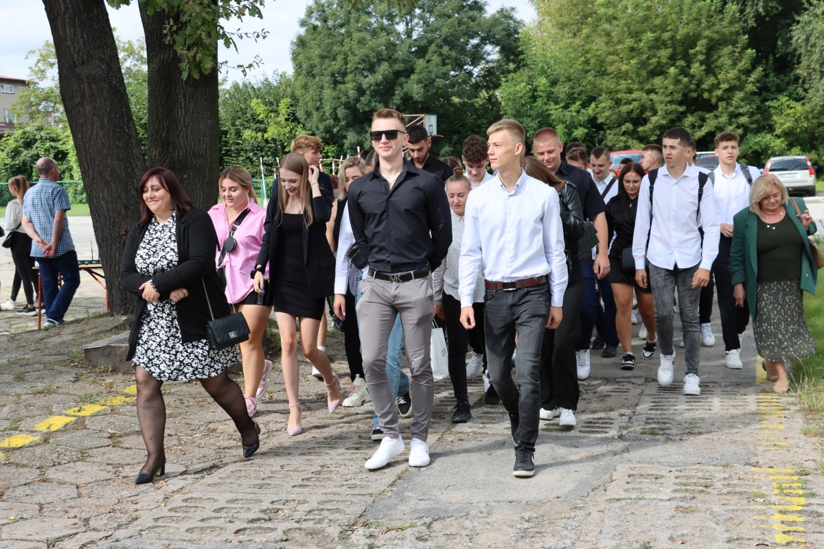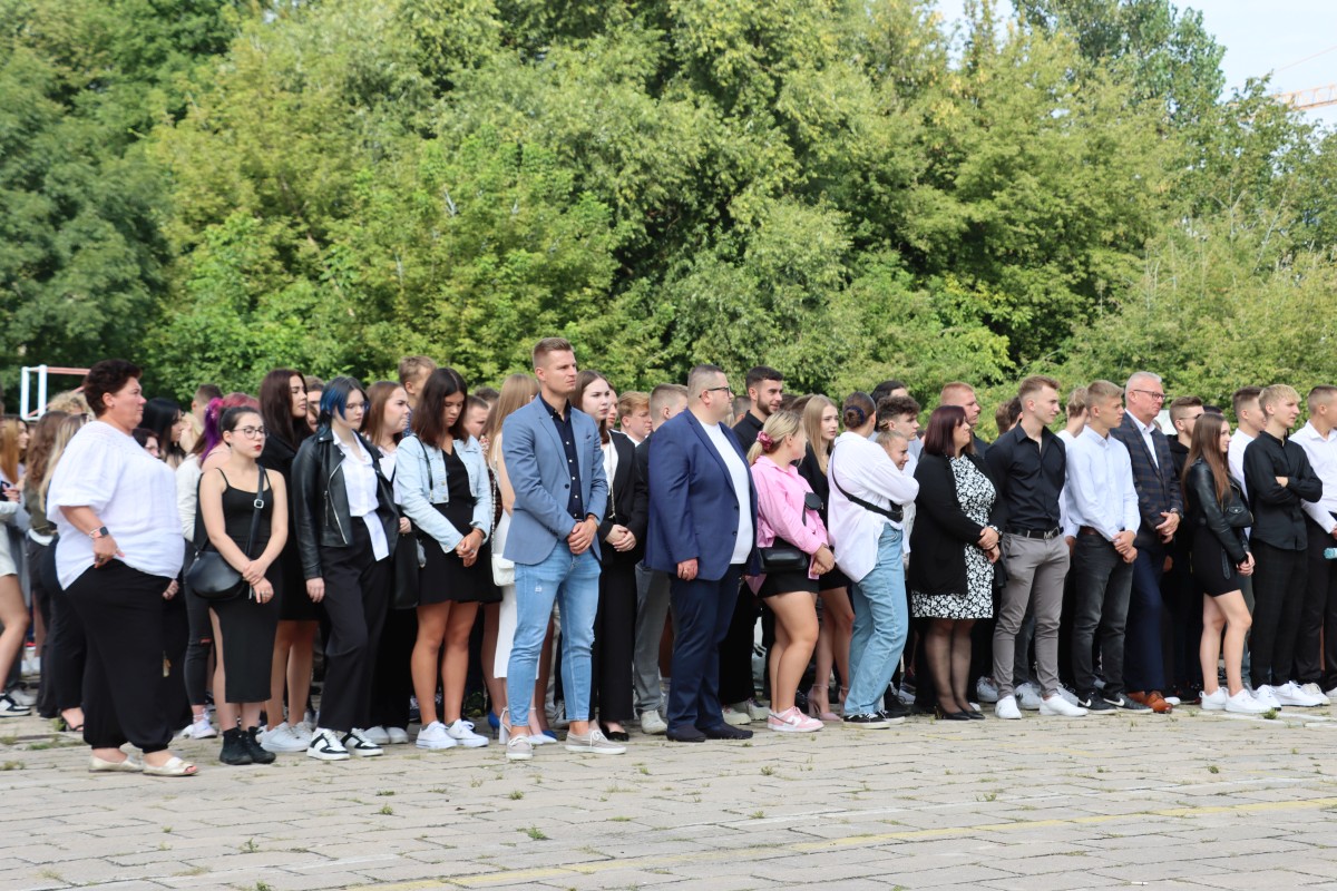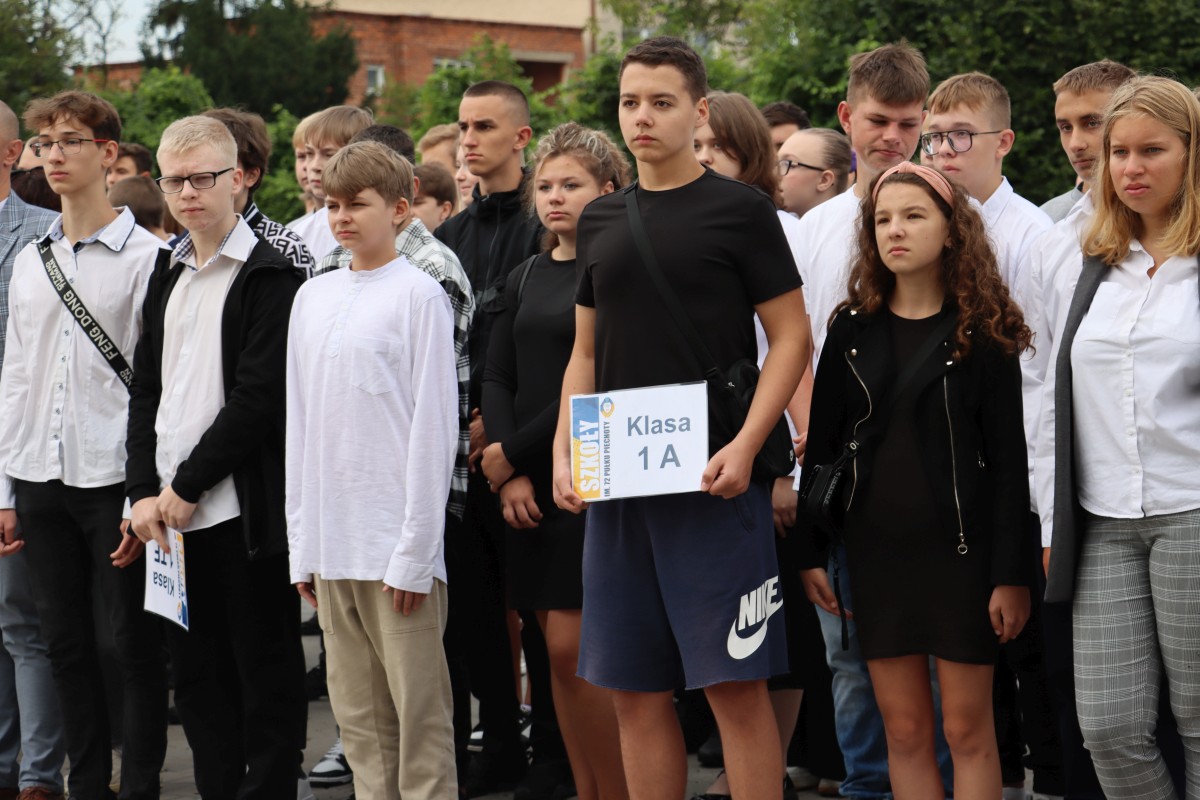 Wypoczęci, uśmiechnięci, pełni pomysłów i zapału. W takich nastrojach 4 września 2023 r. powitali nowy rok nauki uczniowie Szkół im. 72 Pułku Piechoty w Radomiu. Na młodzież czekali wychowawcy i nauczyciele, świetnie przygotowane i wyposażone pracownie dydaktyczne, w tym jedna z nowocześniejszych w mieście sal gimnastycznych. Z grona rekordowej liczby 1000 uczniów, którzy w roku szkolnym 2023/2024 podejmują naukę przy ul. Saskiej 4/6, w sposób szczególny byli witani pierwszoklasiści. Wybrali edukację na tak atrakcyjnych kierunkach, jak: logistyka, informatyka, lotniskowe służby operacyjne, transport kolejowy, hotelarstwo, żywienie i usługi gastronomiczne, usługi fryzjerskie i po raz pierwszy – na kierunku technik programista. Inaugurując uroczyście nowy rok szkolny, dyrektor Katarzyna Kołodziejska podkreśliła, że obecny rok nauki jest wyjątkowy, gdyż przypada w 250. rocznicę powstania Komisji Edukacji Narodowej, nierozerwalnie kojarzonej mimo upływu lat z nowoczesnym kształceniem młodego pokolenia. Życzę – powiedziała Pani Dyrektor – by zdobyta wiedza i umiejętności pozwoliły wam zrealizować własne, wymarzone cele zawodowe. Na pewno pomogą w tym doświadczeni nauczyciele oraz ambitne programy ministerialne i europejskie, w których biorą udział Szkoły im. 72 Pułku Piechoty. Jedną z nowości jest Branżowe Centrum Umiejętności, które oznacza dla szkoły perspektywę dalszego rozwoju. Z okazji rozpoczęcia nowego roku nauki szef Wojskowego Centrum Rekrutacji w Radomiu ppłk Sławomir Głowiński odczytał list skierowany do uczniów klas mundurowych przez gen. bryg. Mirosława Brysia, szefa Centralnego Wojskowego Centrum Rekrutacji. Jak przystało na placówkę oświatową, zaangażowaną w wychowanie patriotyczne i proobronne młodzieży, uroczystość uświetniła swoją obecnością kompania reprezentacyjna. Na zakończenie uczniowie udali się wraz z wychowawcami na spotkanie do sal lekcyjnych.