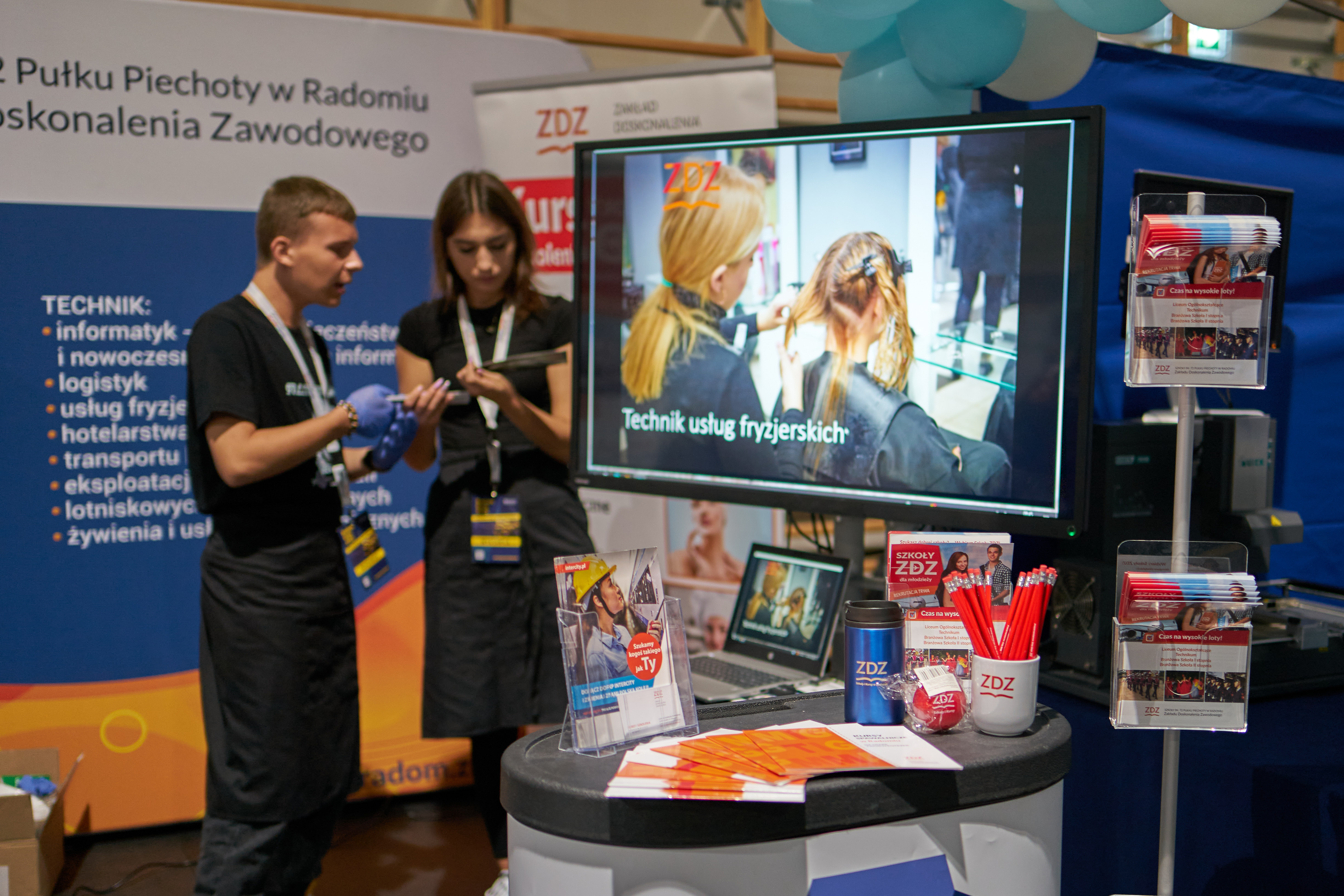 Pod hasłem „Siła radomian - siłą gospodarki” w dniach 8 – 9 września odbyła się pierwsza edycja wydarzenia pn. Radom EXPO 2023. W hali Radomskiego Centrum Sportu, na zaproszenie Prezydenta Miasta, stoiska wystawiły firmy wiodących w mieście branż oraz szkół technicznych. W gronie wystawców nie zabrakło Szkół im. 72 Pułku Piechoty, w których uczniowie kształcą się na tak ważnych dla polskiej gospodarki kierunkach, jak: technik programista, technik informatyk, technik logistyk, technik lotniskowych służb operacyjnych czy technik transportu kolejowego. Nasze stoisko odwiedziły tłumy gości EXPO. Na wszystkich czekał poczęstunek w postaci produktów kuchni molekularnej. Słodycze: żelki i lizaki były wykonywane „na gorąco” przez uczniów kierunku technik żywienia i usług gastronomicznych pod kierunkiem nauczycieli zawodu. Życzliwie przyjętą niespodzianką był także pokaz musztry, za którą niedawno szkolna kompania reprezentacyjna zdobyła w Zakopanem tytuł wicemistrza Polski. Dziękując organizatorom za zaproszenie, wyrażamy radość, że mieliśmy możliwość zaprezentowania mieszkańcom Radomia ogromnego potencjału Szkół, jak również przybliżyć naszą ofertę edukacyjną w zakresie kształcenia technicznego.
