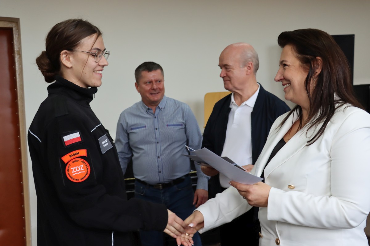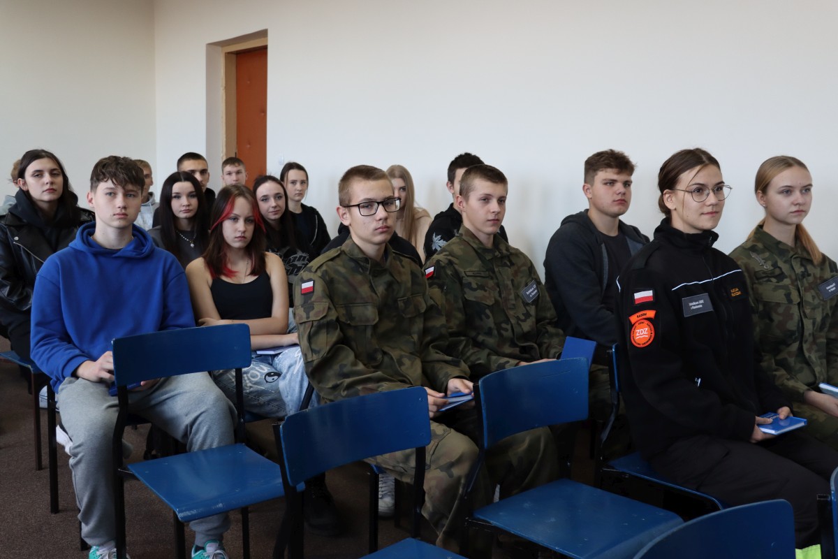 13 listopada 2023 r. ok. 30 uczniów klas mundurowych, którzy pomyślnie zakończyli kurs na skoczka spadochronowego w Aeroklubie Radomskim, odebrało certyfikaty potwierdzające nabyte umiejętności. Szkolenie przeprowadzone w połowie października, po raz pierwszy zostało zorganizowane na terenie lotniska w Piastowie. Certyfikatów i nabycia dodatkowych umiejętności pogratulowała młodzieży dyrektor szkoły Katarzyna Kołodziejska: - Jesteście dla mnie bohaterami, choć dla was była to ciekawa, podniebna przygoda i wielka frajda – powiedziała Pani Dyrektor. – Zawsze pamiętajcie, że życie i zdrowie są dla każdego najważniejsze. Szkoła na pewno będzie was wspierać w bezpiecznym rozwijaniu tej pasji, która jest wielkim atutem w pracy w służbach mundurowych. W spotkaniu wzięli udział goście: Dorota Rajkowska, prezes Aeroklubu Radomskiego oraz instruktorzy skoków spadochronowych. Pani Prezes zaprosiła uczniów na plenerowe ćwiczenie ze scenariuszem iście filmu fabularnego. 22 listopada na terenie lotniska w Piastowie dojdzie do symulowanego zderzenia samochodów z samolotem, z podejrzeniem o atak terrorystyczny w tle. Do akcji w obecności pozorantów włączone zostaną wszystkie służby ratunkowe...