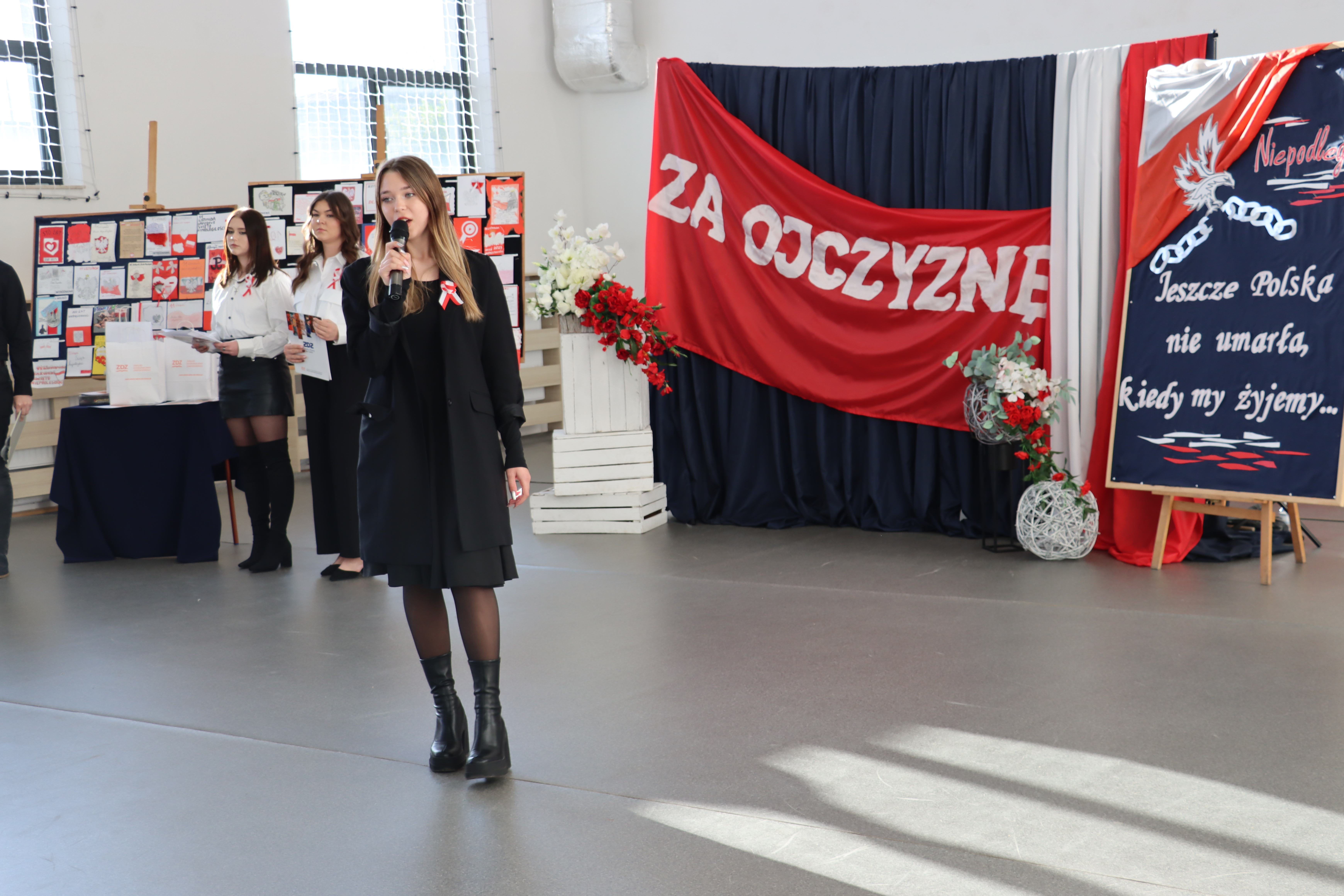 Bardzo uroczyście społeczność szkolna obchodziła 105. rocznicę odzyskania przez Polskę niepodległości. Już 10 listopada 2023 r. szkoła włączyła się do ogólnopolskiej akcji „Niepodległa dla Hymnu” i na placu szkolnym, w asyście kompanii reprezentacyjnej, śpiewaliśmy Mazurka Dąbrowskiego. Wcześniej grupa uczniów zapaliła znicze w patronackich miejscach pamięci: przed pomnikiem Patrona – 72 Pułku Piechoty oraz przy Krzyżu Wolności. Z kolei 11 listopada reprezentacja szkoły wzięła udział w oficjalnych obchodach narodowego święta, odpowiadając na zaproszenie władz miasta, parlamentarzystów i służb mundurowych. Uczniowie wraz z dyrektor szkoły Katarzyną Kołodziejską uczestniczyli w nabożeństwie w radomskiej katedrze, następnie w przemarszu orszaku ulicami miasta i uroczystości przed pomnikiem czynu legionowego w Rynku, składając tam wiązankę kwiatów. 14 listopada w szkole odbyła się okolicznościowa akademia, poprzedzona apelem przeprowadzonym zgodnie z ceremoniałem wojskowym. Następnie na sali gimnastycznej utalentowani artystycznie uczniowie przedstawili okolicznościowy program, nawiązujący tematycznie do Narodowego Święta Niepodległości i dziś pojmowanego patriotyzmu. Wystąpili Gabriela Wojtakowska, Weronika Rdzanek i Kewin Grzywacz, przygotowani pod kierunkiem nauczyciela historii Sebastiana Konopki, a także gorąco przyjęci uczniowie Niepublicznej Szkoły Muzycznej Zakładu Doskonalenia Zawodowego Ryszard Sadza i Miłosz Mazur, przygotowani przez nauczycielki Sylwię Minarz – Płatos i Irynę Borysovą. Finalnym akcentem akademii było rozstrzygnięcie konkursu plastyczno-historycznego „Kartka dla Niepodległej”. Z zorganizowanej wystawy prac wynika, że konkurs przeprowadzony pod kierunkiem nauczycielki plastyki Anety Bernat spotkał się z dużym zainteresowaniem uczniów, a poziom pracy był wysoko. Pierwsze miejsce zajęła Patrycja Rejczak, drugie Aleksandra Kulik, a trzecie Nikola Gizicka. Wyróżnienia otrzymali: Justyna Walczyk, Jakub Kowalski i Salomon Kryzanowski. Pani Dyrektor Katarzyna Kołodziejska gratulując autorom nagrodzonych prac, podziękowała wszystkim, którzy z tak dużym zaangażowaniem uczestniczyli w tegorocznych obchodach święta wolności.