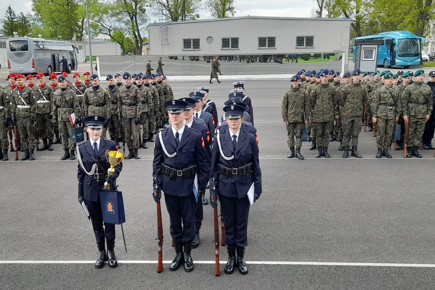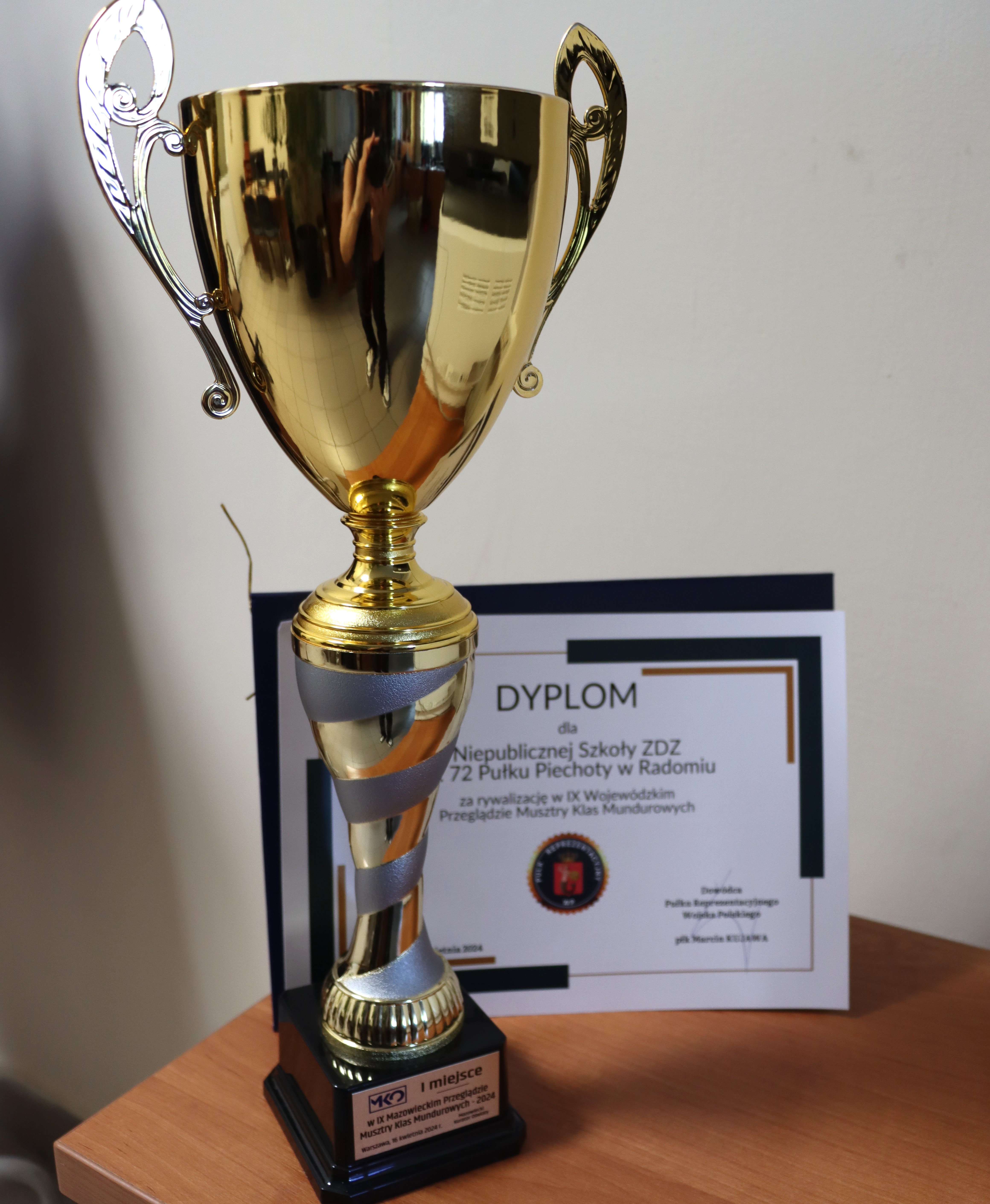 16 kwietnia 2024 r. Kompania Reprezentacyjna Szkół im. 72 Pułku Piechoty w Radomiu wzięła udział w IX Mazowieckim Przeglądzie Musztry Klas Mundurowych. W szranki rywalizacji stanęło siedem drużyn, które prezentowały swoje umiejętności na terenie Pułku Reprezentacyjnego Wojska Polskiego w Warszawie. Ocenie podlegała musztra indywidualna i zespołowa m.in. zwroty w miejscu, odstępowanie i łączenie, a także defilada i zejście z placu z piosenką marszową. W drugim etapie każda z drużyn uczestniczących w przeglądzie miała szansę zaprezentować swój autorski układ musztry paradnej. Podobnie jak w ubiegłym roku, nasz zespół okazał się najlepszy, zajmując pierwsze miejsce. Gratulujemy uczniom i opiekunowi, insp. Pawłowi Raczyńskiego! Teraz kompania przygotowuje się do ogólnopolskiego przeglądu, by i tam odnieść sukces.