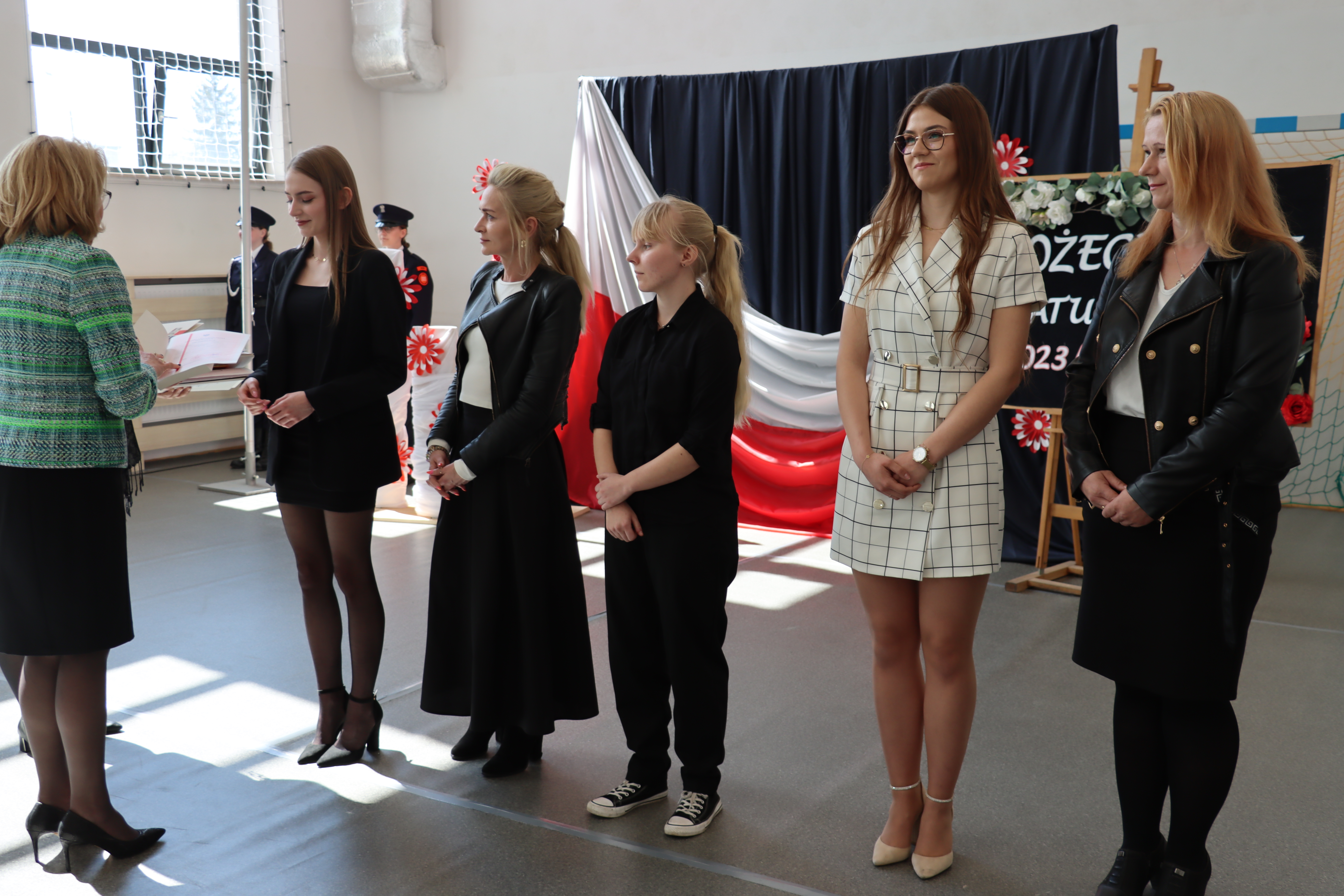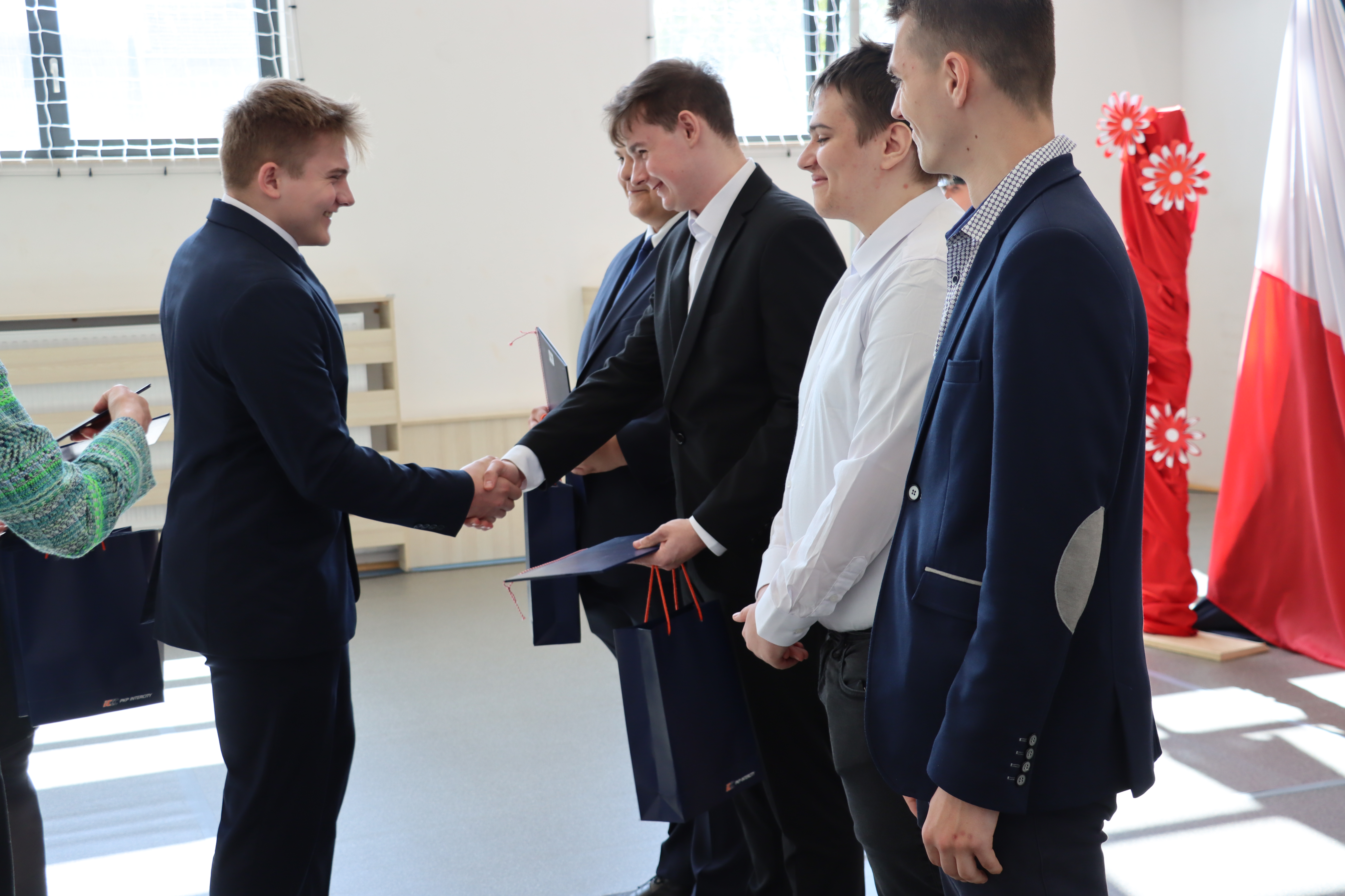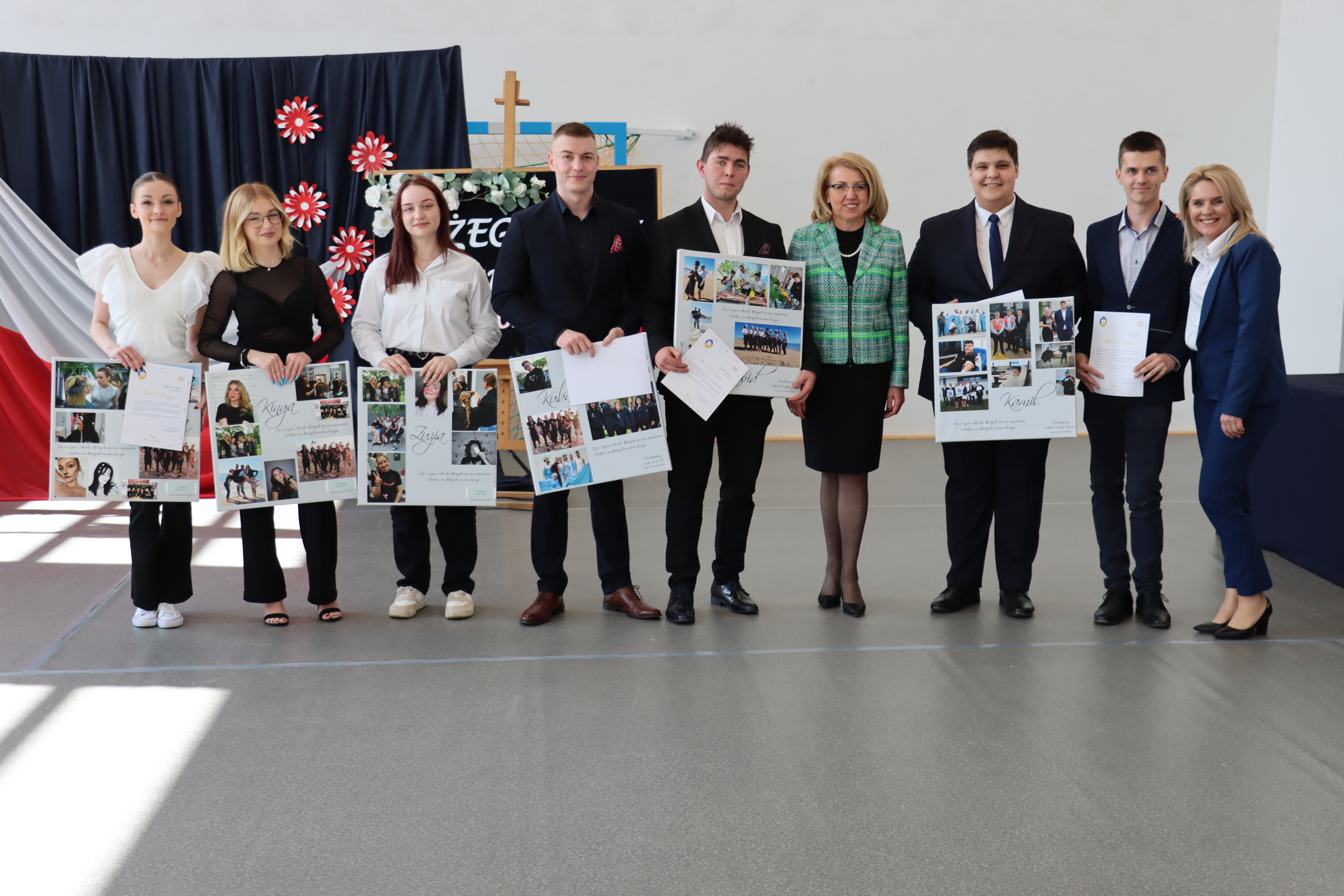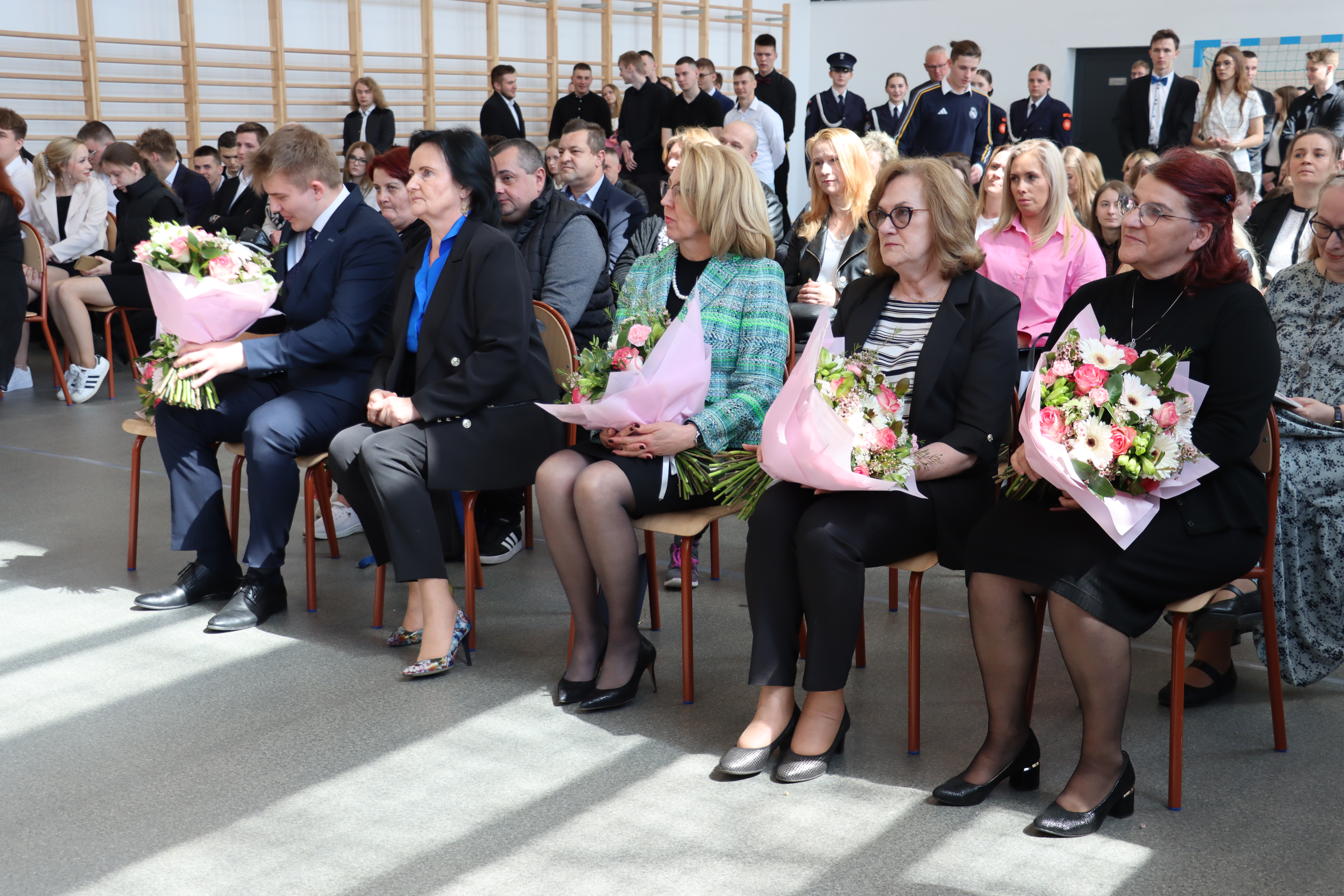 26 kwietnia 2024 r. społeczność szkolna w uroczystej oprawie pożegnała tegorocznych absolwentów. Naukę zakończyli uczniowie klas czwartych Liceum Ogólnokształcącego, piątych Technikum oraz klasy drugiej Branżowej Szkoły II Stopnia. Podczas apelu dyrektor Katarzyna Kołodziejska podziękowała młodzieży za wspólny czas, lata edukacji w szkole i zaangażowanie w działalność społeczną, gratulując prymusom bardzo dobrych wyników. Czekały na nich świadectwa z czerwonym paskiem oraz nagrody książkowe. Wielu uczniów oraz ich rodzice odebrali listy gratulacyjne od Dyrekcji. Natomiast absolwenci klas mundurowych otrzymali specjalne certyfikaty zaświadczające o ukończeniu „Edukacji policyjnej”, a także „Edukacji wojskowej”. Damian Czubak, ubiegłoroczny absolwent szkoły wystąpił w innej roli jako pracownik PKP Intercity wręczył certyfikaty ukończenia programu stypendialnego swoim młodszym kolegom. Na koniec młodzież udała się po raz ostatni do sal lekcyjnych na spotkanie ze swoimi wychowawcami, by odebrać świadectwo ukończenia szkoły. Tuż po długim majowym weekendzie, 7 maja rozpoczną się egzaminy maturalne. Wszystkim życzymy wymarzonych tematów i połamania piór!