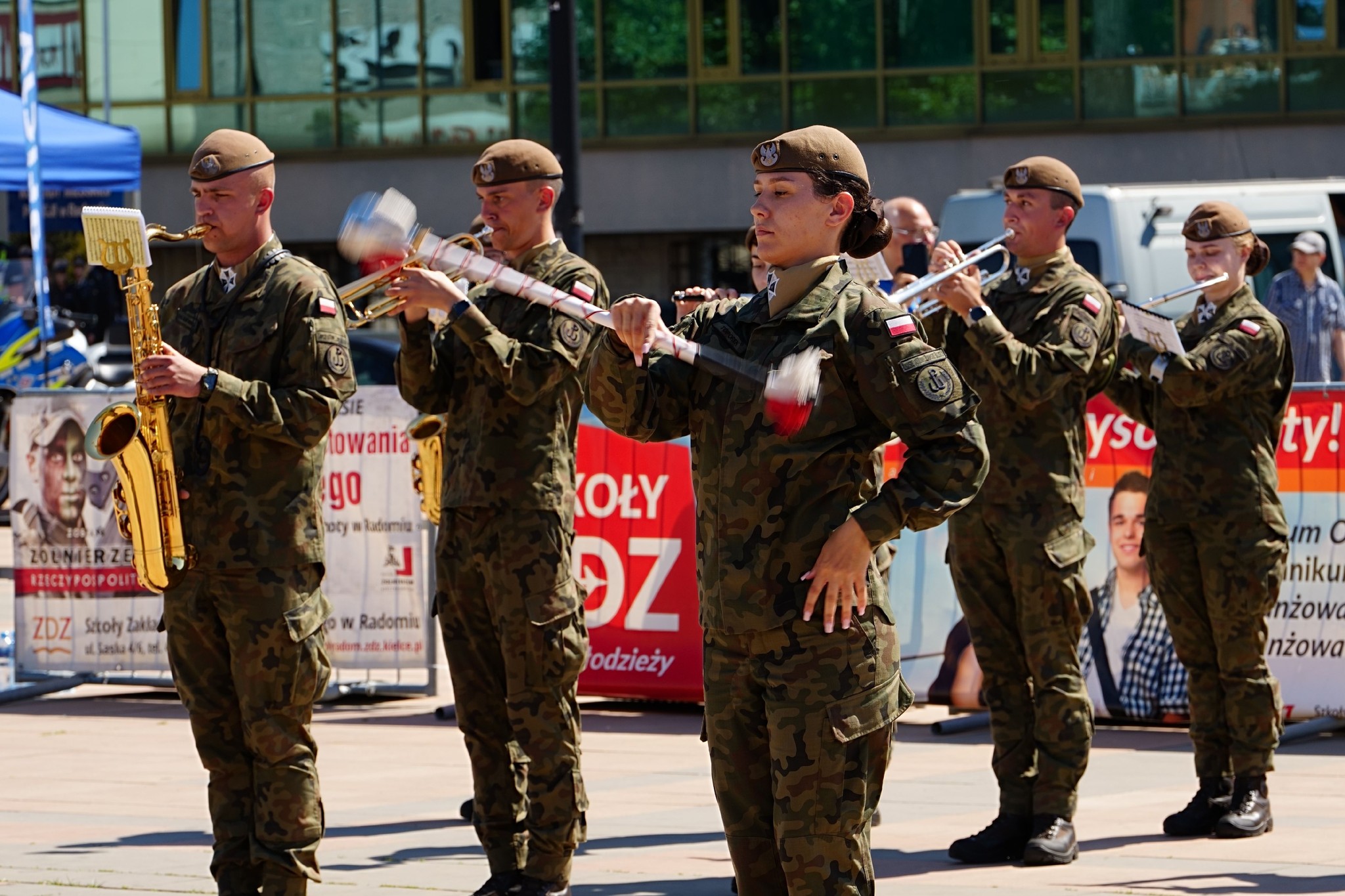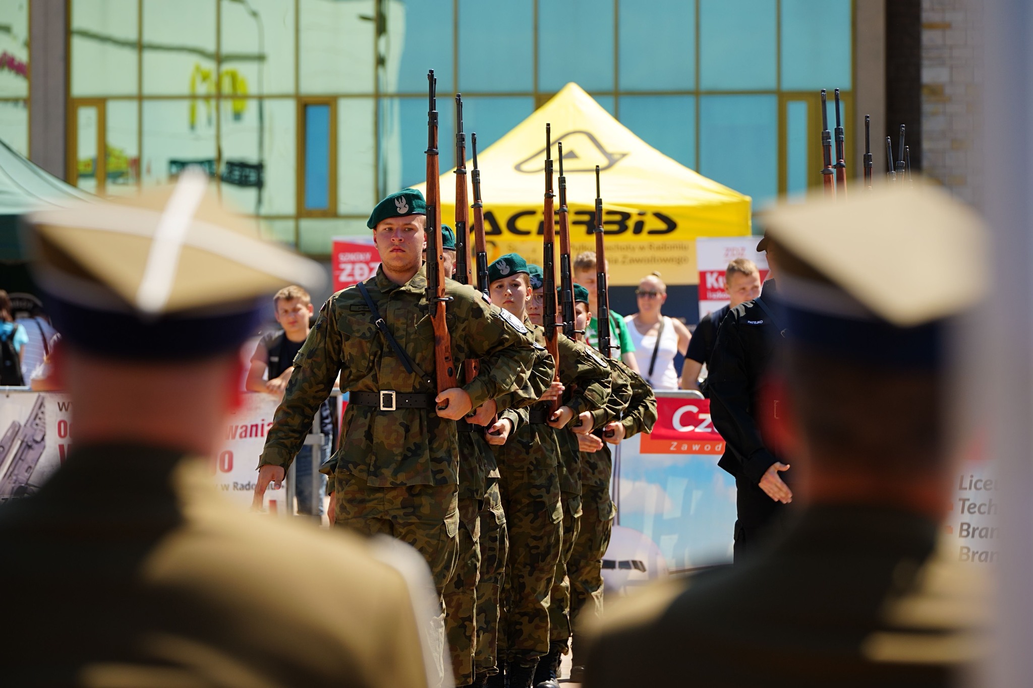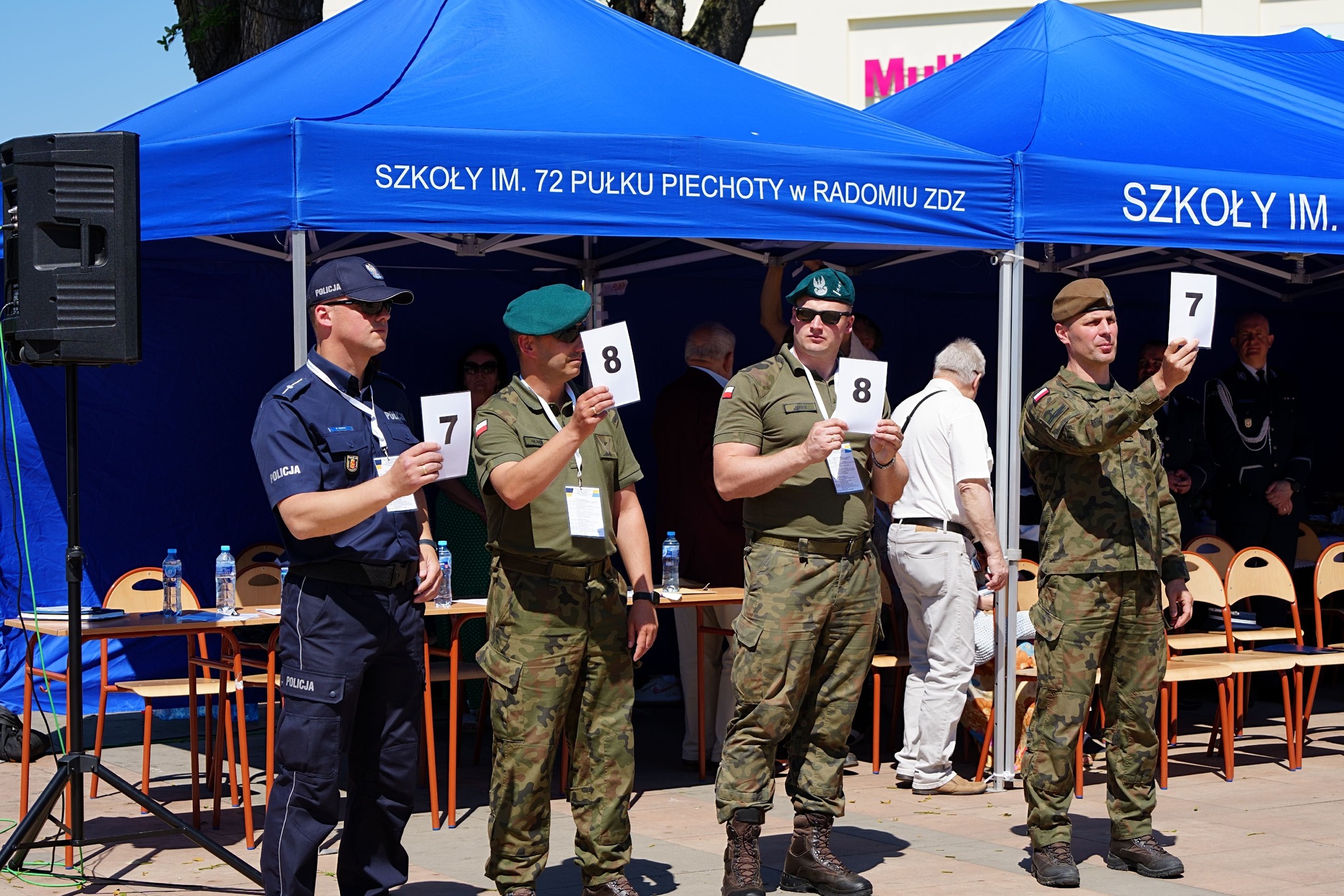 27 i 28 maja 2024 r. Szkoły im. 72 Pułku Piechoty zorganizowały I Ogólnopolski Przegląd Musztry Klas Mundurowych Szkół Zakładów Doskonalenia Zawodowego. Uczestniczyło około 100 uczniów klas mundurowych wraz z opiekunami z Kielc, Ciechanowa, Węgrowa, Sokołowa Podlaskiego, Konina, Gniezna. Radom reprezentował pododdział ze Szkół im.72 Pułku Piechoty, od początku prowadzony przez insp. Pawła Raczyńskiego, nauczyciela klas mundurowych. Program obydwu dni zdominowały konkursowe pokazy na Placu Jagiellońskim, w dwóch kategoriach: musztry obowiązkowej i musztry paradnej. Był też czas na integrację młodzieży, występy renomowanych orkiestr reprezentacyjnych: Wojsk Obrony Terytorialnej i Komendy Głównej Policji, a także pokazy interwencji policyjnych i umiejętności innych niż musztra. Grupy uczniów Szkół im. 72 Pułku Piechoty zaprezentowały pokazy samoobrony i wielokulturowości, wystąpiły też cheerleaderki oraz uczennice klas fryzjerskich w specjalnym programie artystycznym. Pokazy musztry przez dwa dni oceniała komisja konkursowa, której przewodniczył mjr Tomasz Klimaszewski z 6 Mazowieckiej Brygady Obrony terytorialnej. W kategorii musztry obowiązkowej pierwsze miejsce zajęły Szkoły im. 72 Pułku Piechoty w Radomiu, drugie Zespół Szkół im. Żołnierzy Sił Pokojowych ONZ w Kielcach, a trzecie Szkoły Centrum Kształcenia Ustawicznego w Koninie. W kategorii musztry paradnej również zwyciężyła Szkoły w Radomiu, a kolejne lokaty zajęły - Szkoły Centrum Kształcenia Ustawicznego w Koninie i Zespół Szkół ZDZ w Kielcach. W klasyfikacji generalnej najwyżej zostały ocenione Szkoły w Radomiu, a następnie Szkoły Centrum Kształcenia Ustawicznego Konin oraz Zespół Szkół w Kielcach. Najlepszym dowódcą wśród szkolnych kompanii została Karolina Migdał ze Szkół im. 72 PP. Na wszystkich czekały dyplomy uczestnictwa, zaś zwycięzcy otrzymali efektowne puchary, statuetki oraz nagrody rzeczowe, zakupione przy wsparciu sponsorów. Rafał Górecki, prezes Zarządu Głównego Związku Zakładów Doskonalenia Zawodowego w Warszawie podziękował młodzieży i ich opiekunom za pełne emocji i widowiskowych efektów pokazy. Życzył wszystkim 7 pododdziałom, by w dalszych tego typu wydarzeniach zajmowali coraz lepsze miejsca. Dyrektor Szkół im. 72 Pułku Piechoty Katarzyna Kołodziejska wyraziła słowa uznania zarówno pod adresem młodzieży, jak i opiekunów za ich całoroczną pracę. – Wierzę – powiedziała - że spotkamy się w Radomiu za rok, na drugim Przeglądzie Musztry.