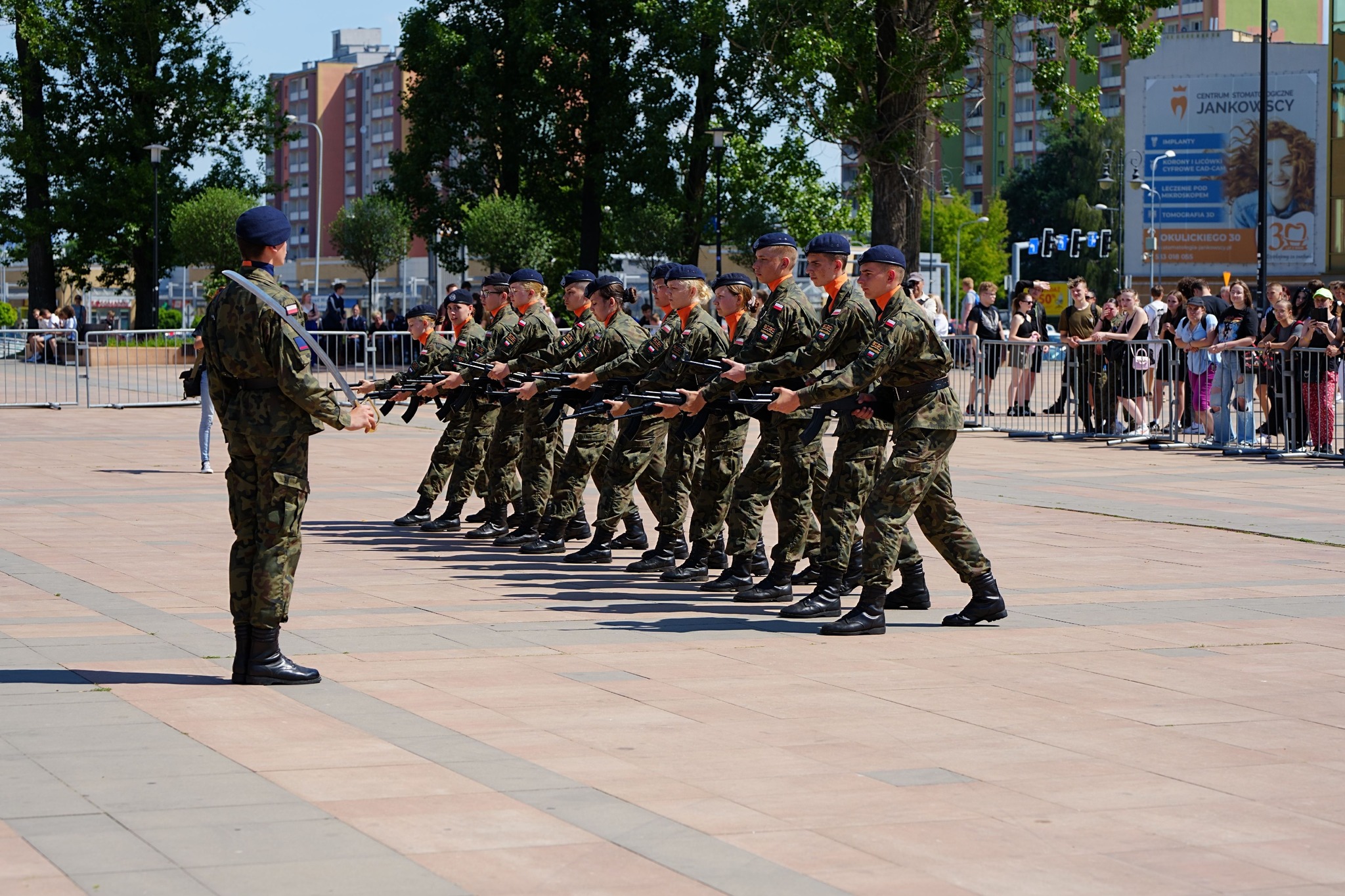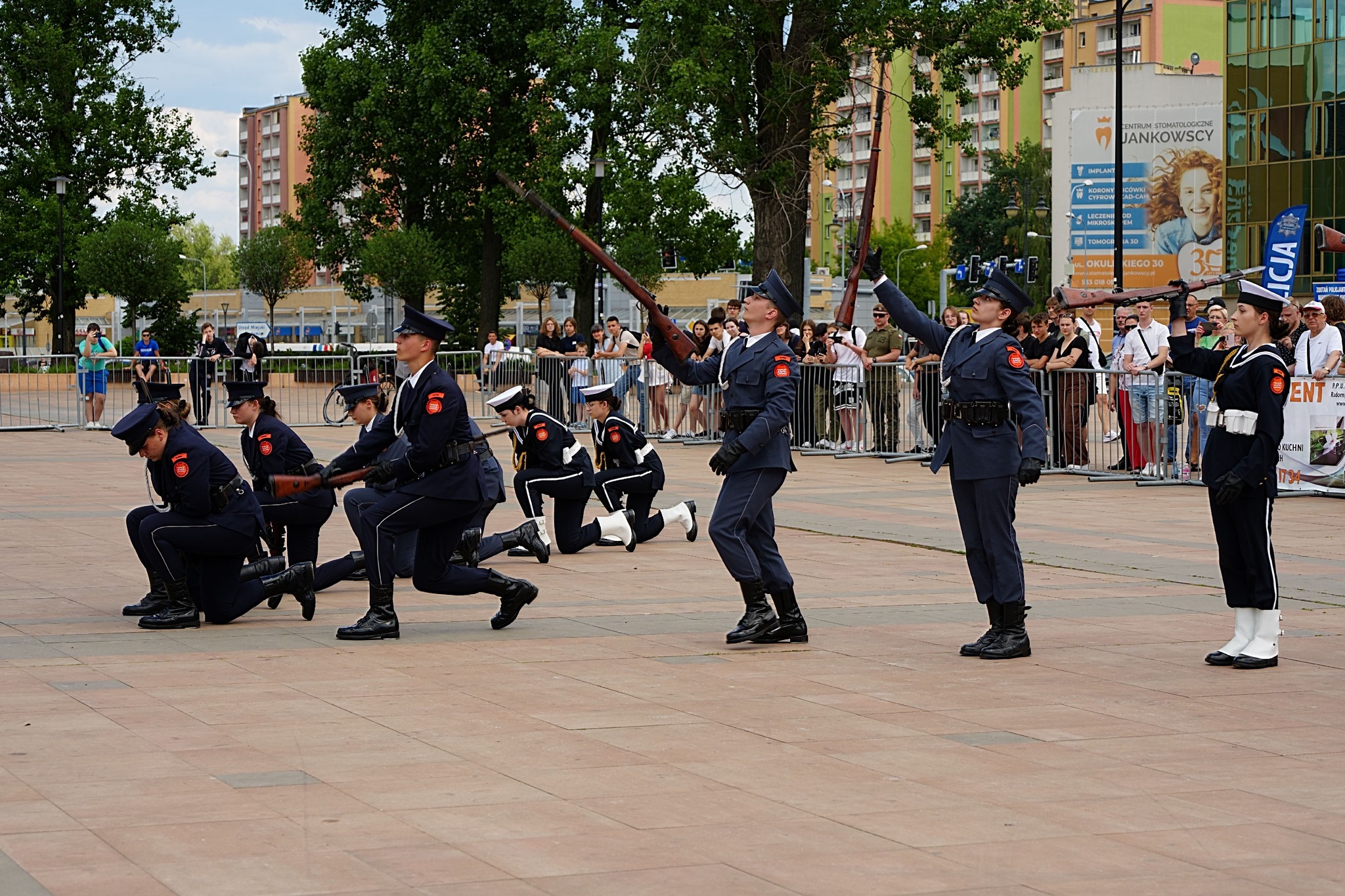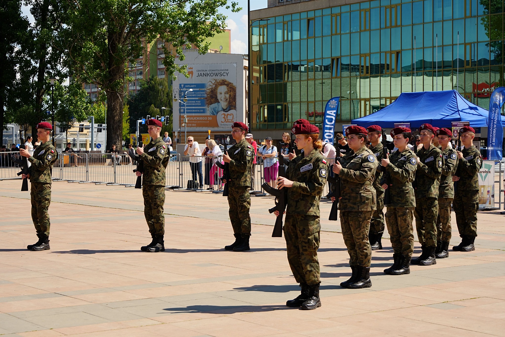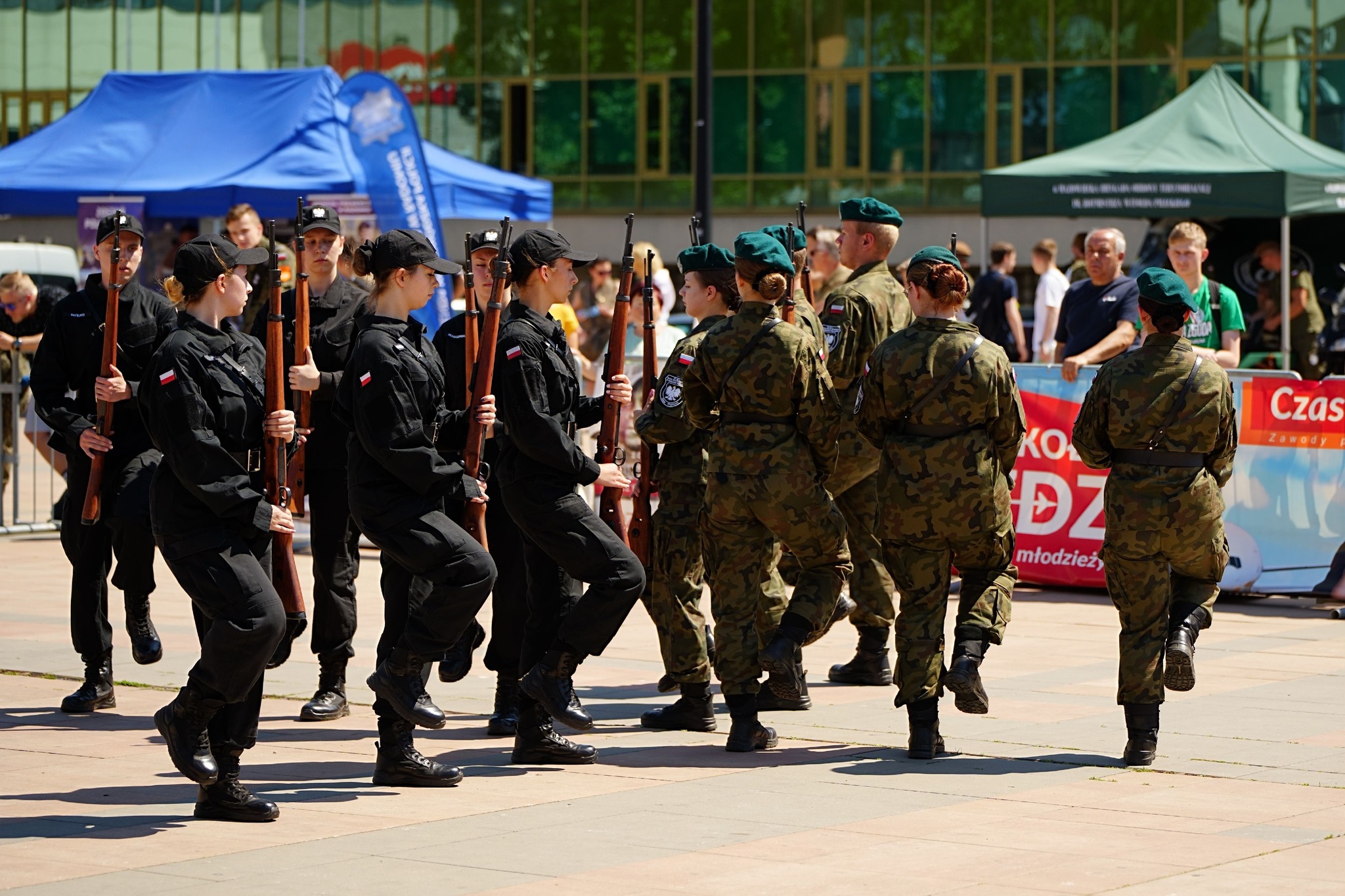 27 i 28 maja 2024 r. Szkoły im. 72 Pułku Piechoty zorganizowały I Ogólnopolski Przegląd Musztry Klas Mundurowych Szkół Zakładów Doskonalenia Zawodowego. Uczestniczyło około 100 uczniów klas mundurowych wraz z opiekunami z Kielc, Ciechanowa, Węgrowa, Sokołowa Podlaskiego, Konina, Gniezna. Radom reprezentował pododdział ze Szkół im.72 Pułku Piechoty, od początku prowadzony przez insp. Pawła Raczyńskiego, nauczyciela klas mundurowych. Program obydwu dni zdominowały konkursowe pokazy na Placu Jagiellońskim, w dwóch kategoriach: musztry obowiązkowej i musztry paradnej. Był też czas na integrację młodzieży, występy renomowanych orkiestr reprezentacyjnych: Wojsk Obrony Terytorialnej i Komendy Głównej Policji, a także pokazy interwencji policyjnych i umiejętności innych niż musztra. Grupy uczniów Szkół im. 72 Pułku Piechoty zaprezentowały pokazy samoobrony i wielokulturowości, wystąpiły też cheerleaderki oraz uczennice klas fryzjerskich w specjalnym programie artystycznym. Pokazy musztry przez dwa dni oceniała komisja konkursowa, której przewodniczył mjr Tomasz Klimaszewski z 6 Mazowieckiej Brygady Obrony terytorialnej. W kategorii musztry obowiązkowej pierwsze miejsce zajęły Szkoły im. 72 Pułku Piechoty w Radomiu, drugie Zespół Szkół im. Żołnierzy Sił Pokojowych ONZ w Kielcach, a trzecie Szkoły Centrum Kształcenia Ustawicznego w Koninie. W kategorii musztry paradnej również zwyciężyła Szkoły w Radomiu, a kolejne lokaty zajęły - Szkoły Centrum Kształcenia Ustawicznego w Koninie i Zespół Szkół ZDZ w Kielcach. W klasyfikacji generalnej najwyżej zostały ocenione Szkoły w Radomiu, a następnie Szkoły Centrum Kształcenia Ustawicznego Konin oraz Zespół Szkół w Kielcach. Najlepszym dowódcą wśród szkolnych kompanii została Karolina Migdał ze Szkół im. 72 PP. Na wszystkich czekały dyplomy uczestnictwa, zaś zwycięzcy otrzymali efektowne puchary, statuetki oraz nagrody rzeczowe, zakupione przy wsparciu sponsorów. Rafał Górecki, prezes Zarządu Głównego Związku Zakładów Doskonalenia Zawodowego w Warszawie podziękował młodzieży i ich opiekunom za pełne emocji i widowiskowych efektów pokazy. Życzył wszystkim 7 pododdziałom, by w dalszych tego typu wydarzeniach zajmowali coraz lepsze miejsca. Dyrektor Szkół im. 72 Pułku Piechoty Katarzyna Kołodziejska wyraziła słowa uznania zarówno pod adresem młodzieży, jak i opiekunów za ich całoroczną pracę. – Wierzę – powiedziała - że spotkamy się w Radomiu za rok, na drugim Przeglądzie Musztry.