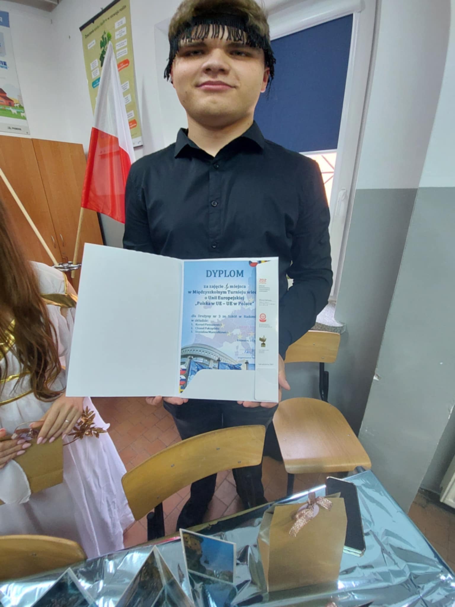 Nasi uczniowie Chanel Połczyńska i Kornel Pietrasiewicz zakwalifikowali się Międzyszkolnego Drużynowego Turnieju Wiedzy Unii Europejskiej i zdobyli w tym turnieju 1 miejsce. W turnieju brało udział 5 innych szkół Zakładu Doskonalenia Zawodowego. Konkurs odbył się 15 października w ZDZ Kozienice. Uczniowie otrzymali dyplom a także vouchery do media ekspert na kwotę 900 zł.