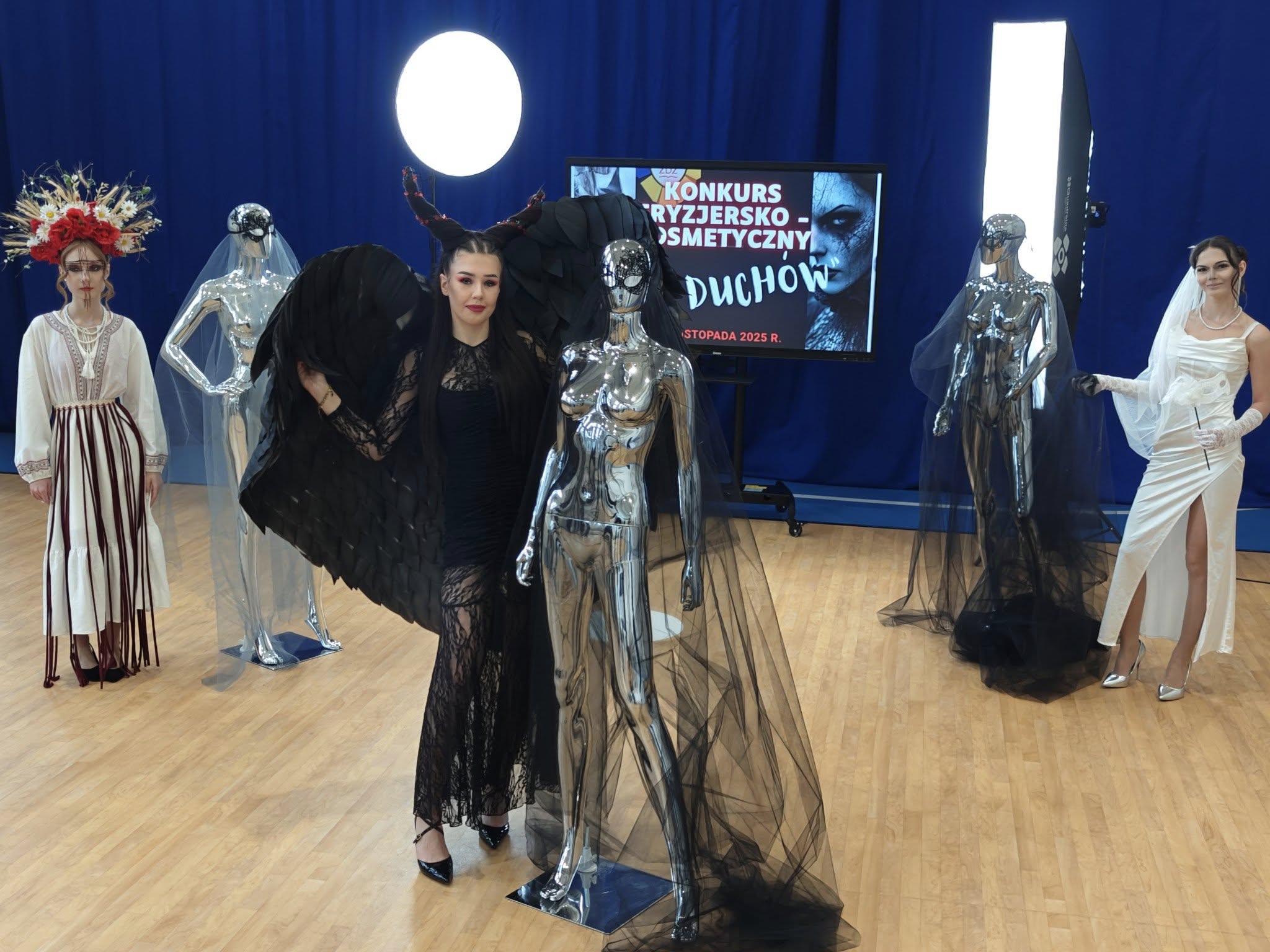 Uczniowie kształcący się w zawodzie technik usług fryzjerskich wzięli udział w wewnątrzszkolnym konkursie fryzjersko - kosmetycznym "Bal duchów", który odbył się 18 listopada 2025r.