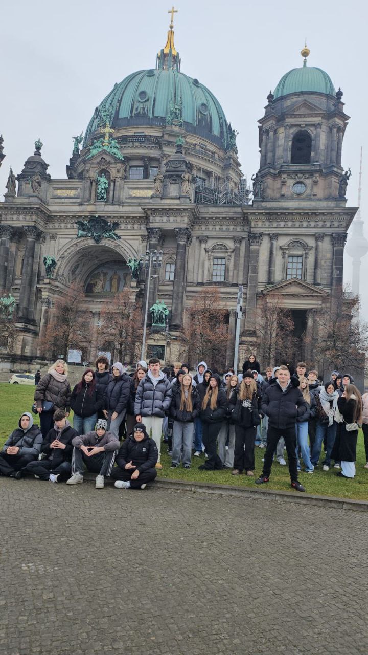 W dniach 2 - 4 grudnia 2025 uczniowie naszej szkoły wybrali się na wycieczkę do Berlina, która okazała się pełna wrażeń i ciekawych odkryć. Już pierwszego dnia zwiedzili Reichstag, a z kopuły budynku podziwiali niezwykły widok na nocny Berlin, rozświetlone ulice, budynki i świąteczną atmosferę miasta.