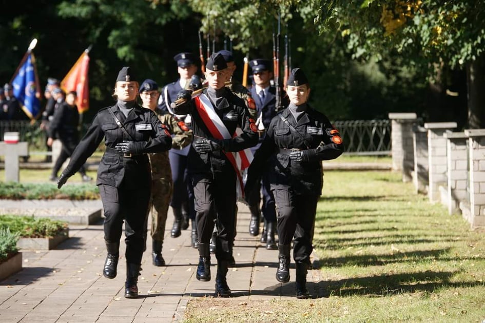 Część uroczystości odbyła się na Cmentarzu Wojennym Żołnierzy 72 Pułku Piechoty im. Dionizego Czachowskiego . Uczniowie uczestniczyli w apelu poległych z udziałem Orkiestry Reprezentacyjnej Wojsk Lądowych z Wrocławia i Kompanii Honorowej 15 Brygady Wsparcia Dowodzenia Sieradz. Po części oficjalnej Kompania Reprezentacyjna Klas Policyjnych zaprezentowała umiejętności w pokazie musztry paradnej na żołnierskim pikniku.