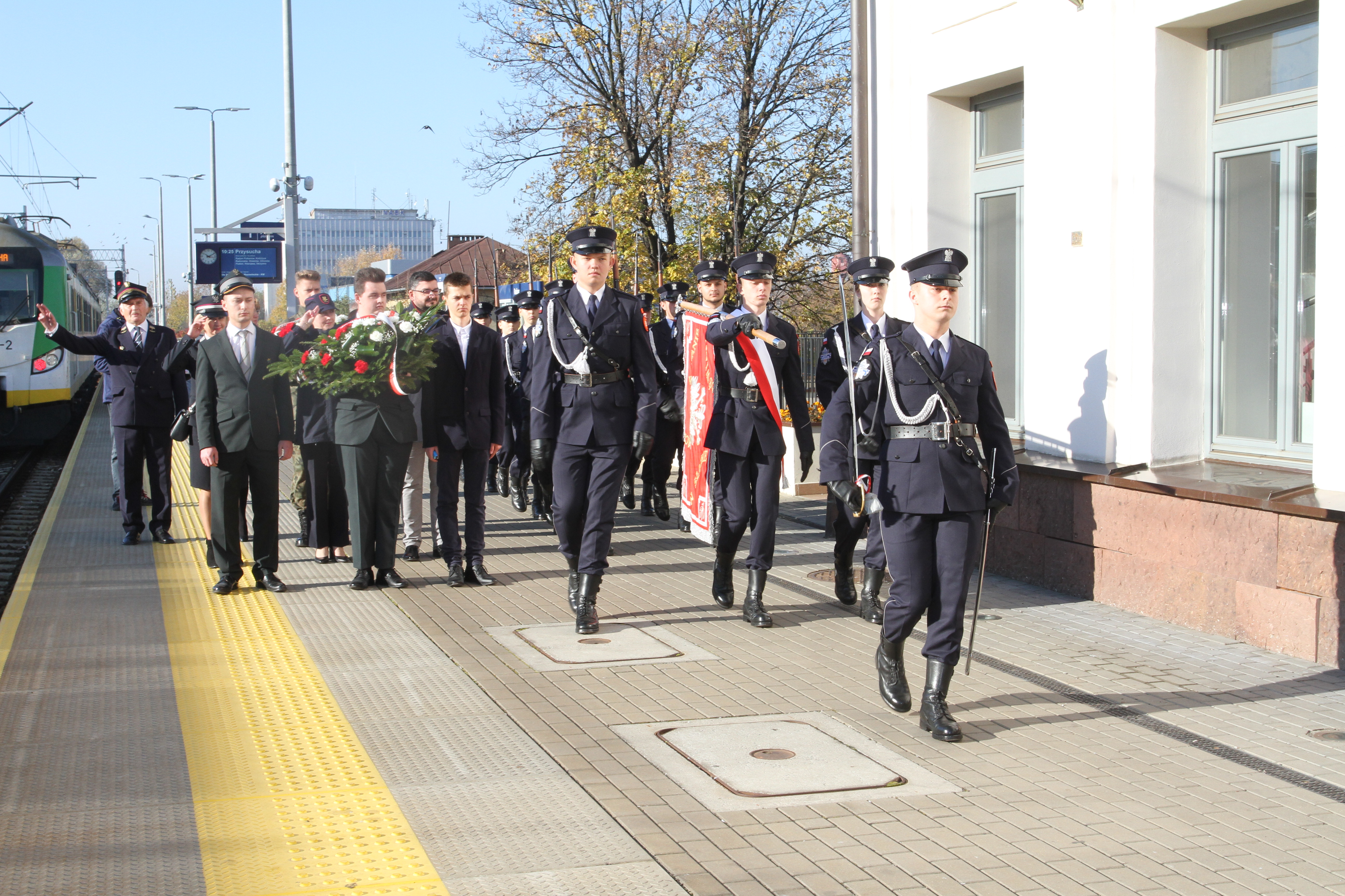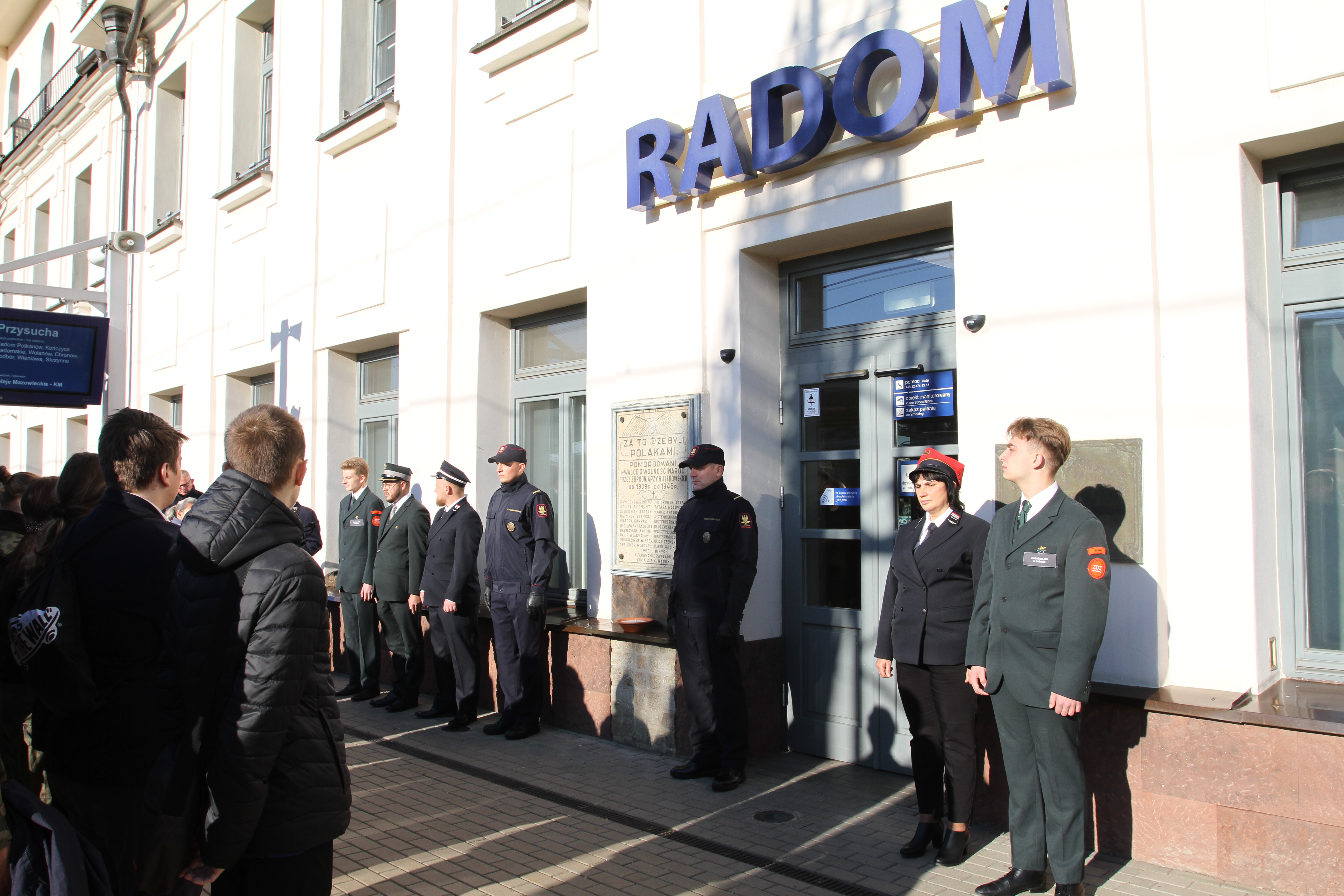 Na I peronie dworca PKP w Radomiu do młodzieży kształcącej się na kierunku technik transportu kolejowego dołączyli przedstawiciele Węzła PKP, Straży Ochrony Kolei oraz PLK Zakładu Linii Kolejowych w Skarżysku – Kamiennej. Uroczystość odbyła się zgodnie z wojskowym ceremoniałem, z udziałem kompanii klas policyjnych Szkół im. 72 Pułku Piechoty. Uczniowie wraz z pracownikami kolei zaciągnęli honorową wartę przed tablicą upamiętniającą bohaterską śmierć radomskich kolejarzy poległych w obronie Ojczyzny. Następnie delegacje złożyły wieńce i wiązanki kwiatów. Dyrektor szkoły Katarzyna Kołodziejska podziękowała inicjatorom tej ważnej lekcji historii miasta i patriotyzmu, zorganizowanej tuż przed świętem zmarłych.