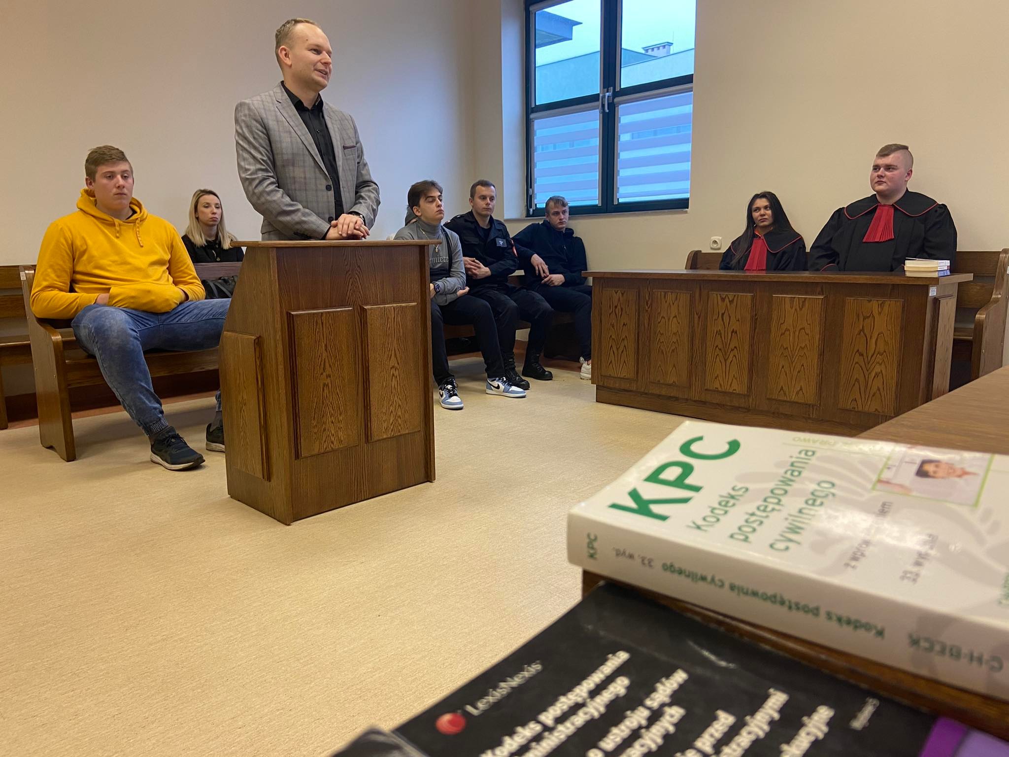 20 grudnia 2021 r. uczniowie klas 3 LA, 3 LB, 3 TD i 4 TB wraz z opiekunami udali się na Wydział Prawa i Administracji Uniwersytetu Technologiczno-Humanistycznego w Radomiu, by uczestniczyć w niecodziennych zajęciach. Poprowadził je prodziekan dr Paweł Śwital.